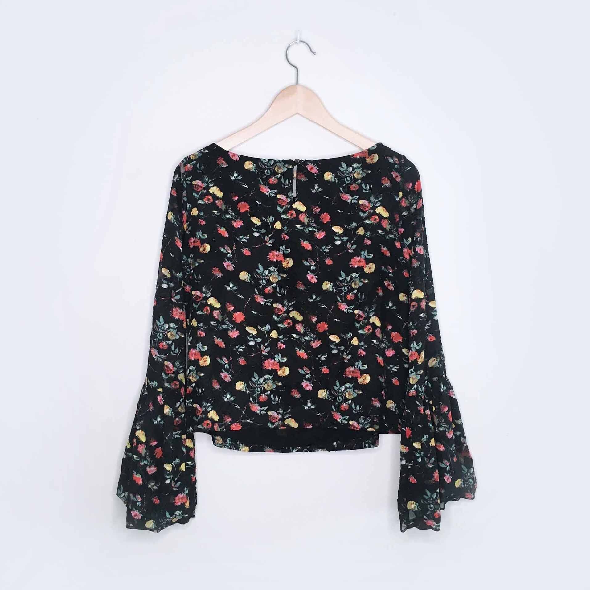 Club Monaco floral flocked blouse with bell sleeves - size Small