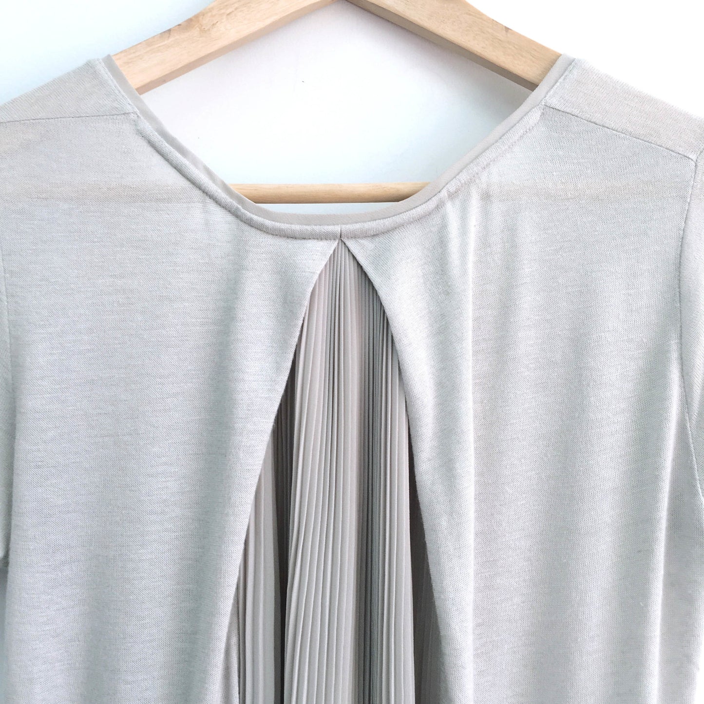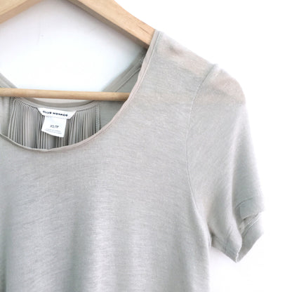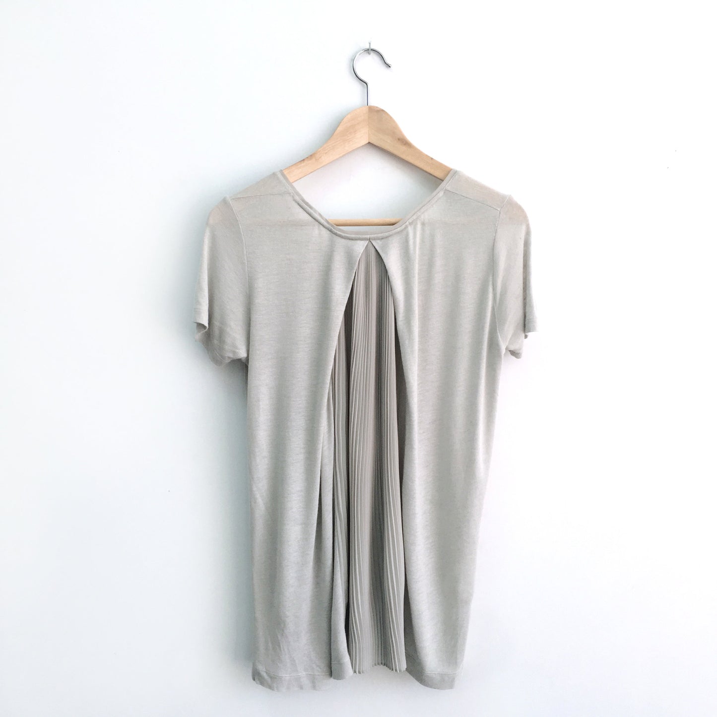 Item Description: Grey linen tee with pleated insert on back. Fits like a small.