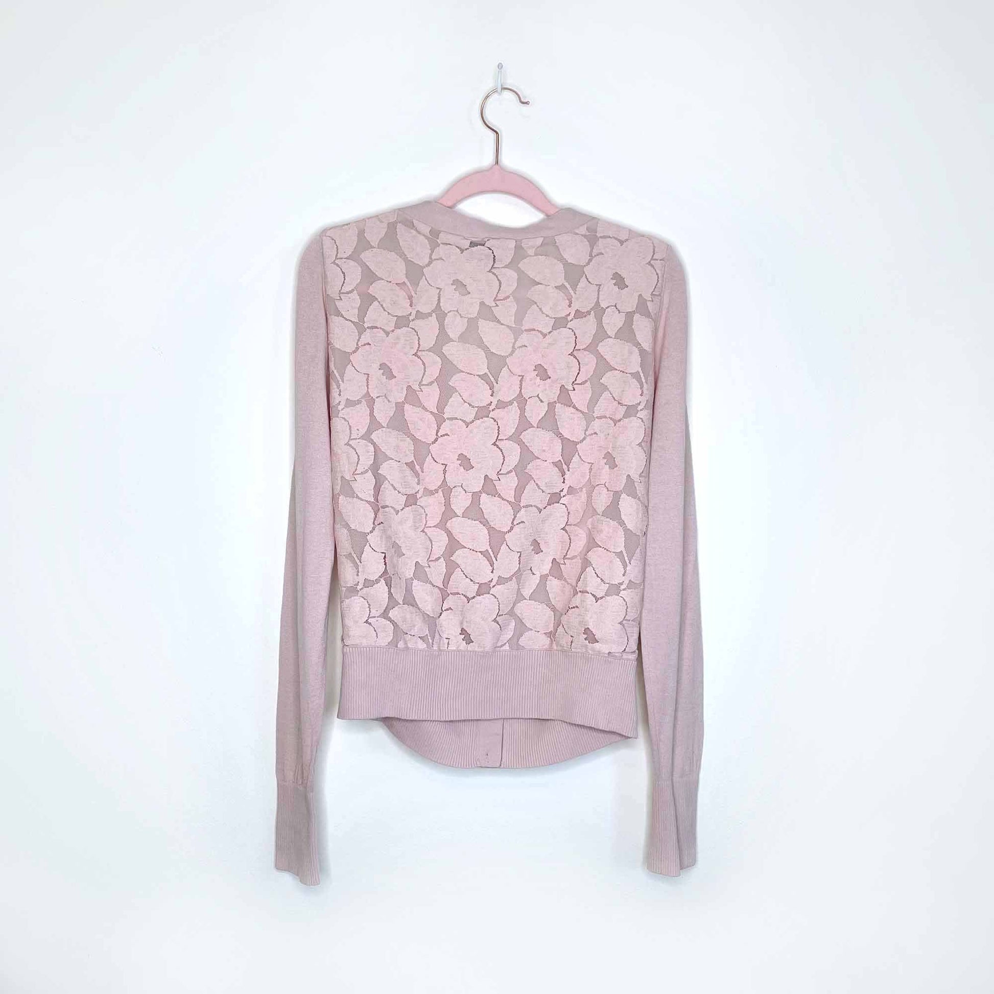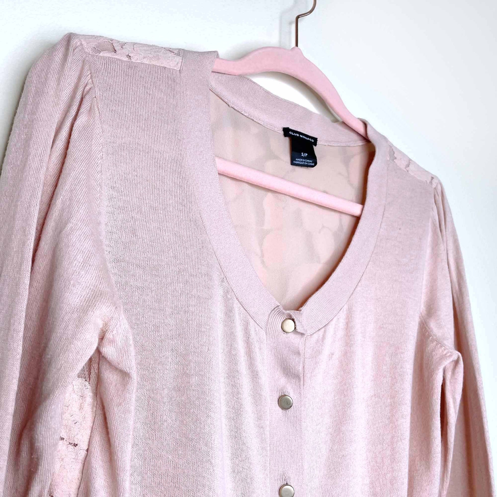 club monaco pink cardigan with lace back - size small