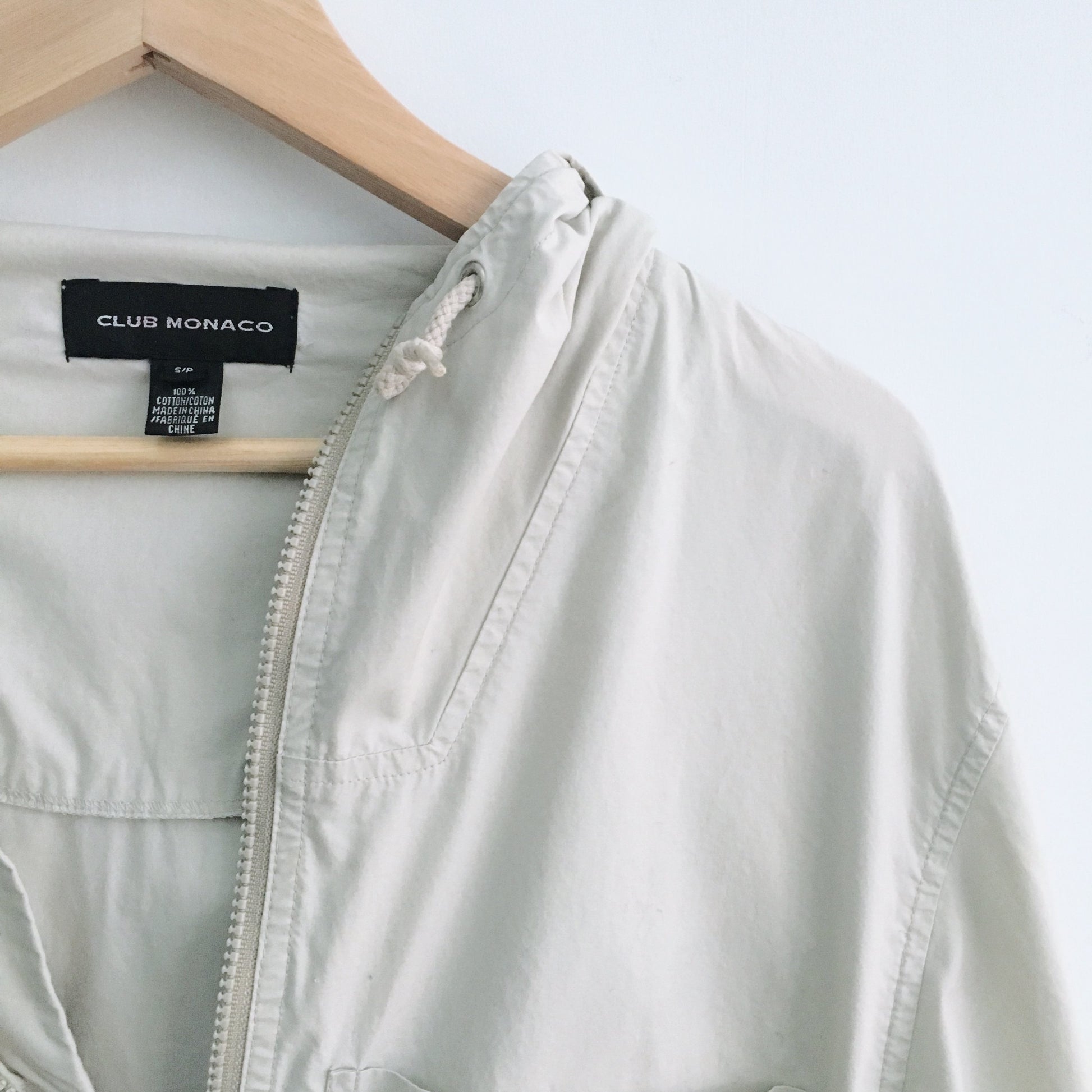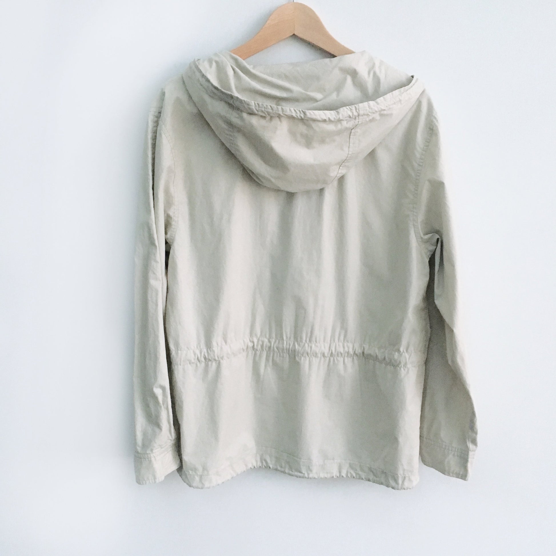Item Description: This lightweight 100% cotton popover jacket is perfect for spring, and soft to the touch. Features two front velcro pockets, a hood and drawstring waist.