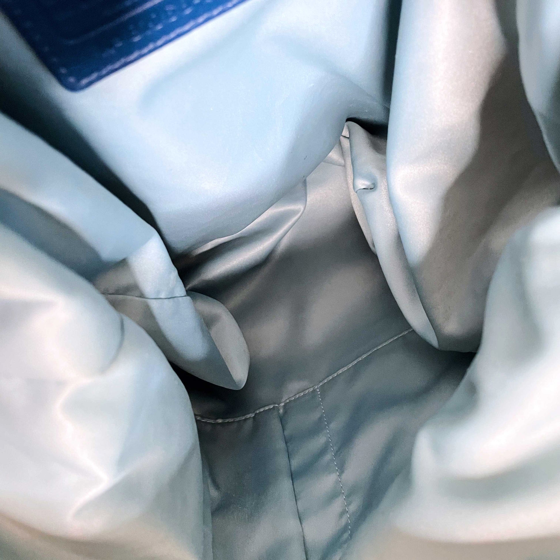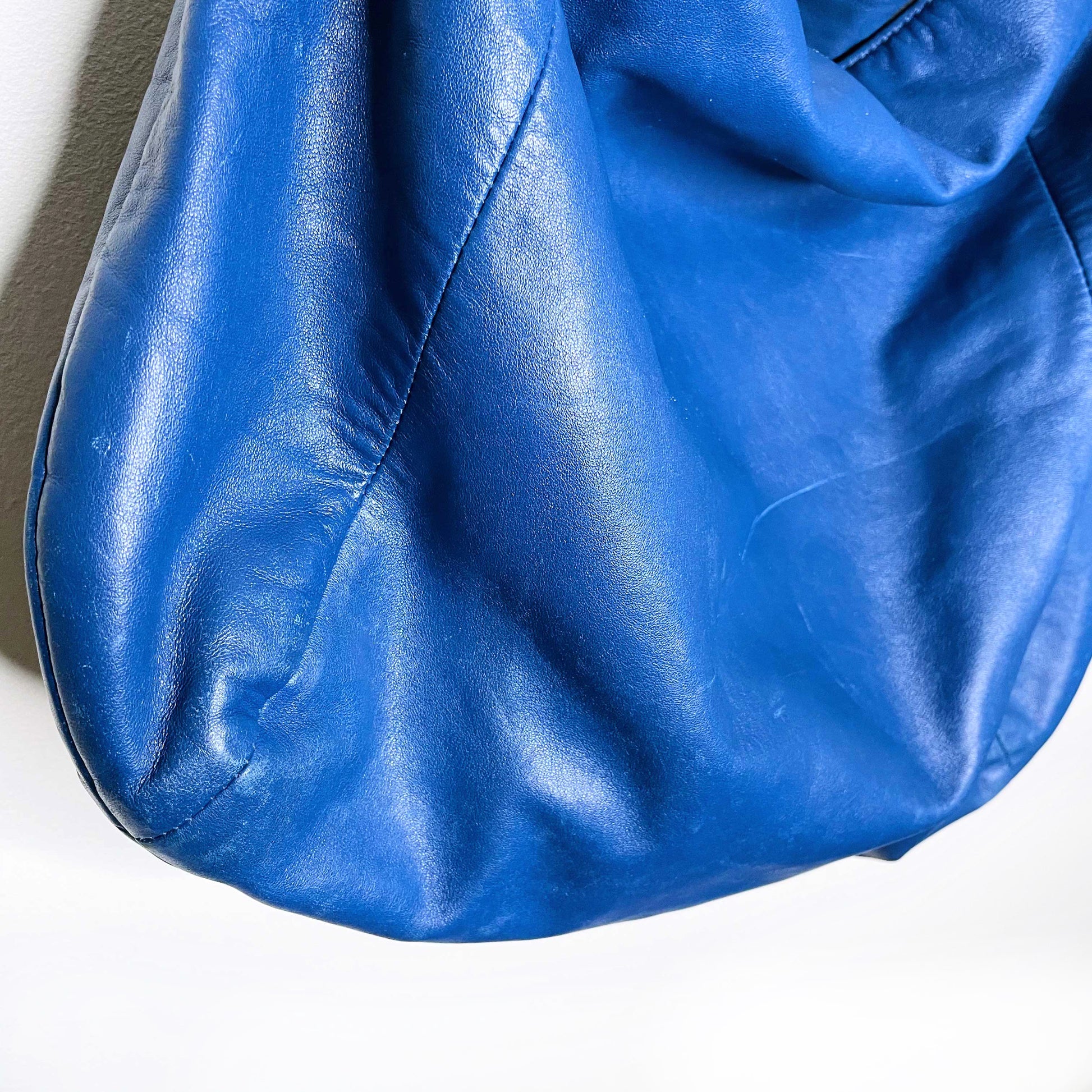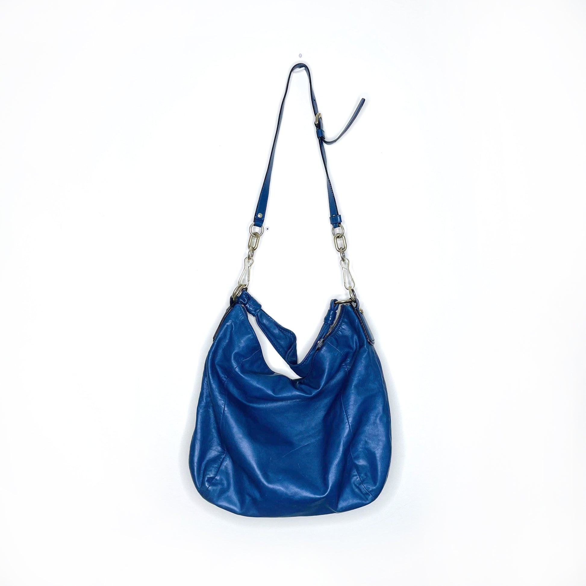 Item Description: Buttery soft leather, large and spacious with interior organizing pockets, a snap clasp on the front and two carrying handles, this true blue leather Coach bag is a true carry-all.
