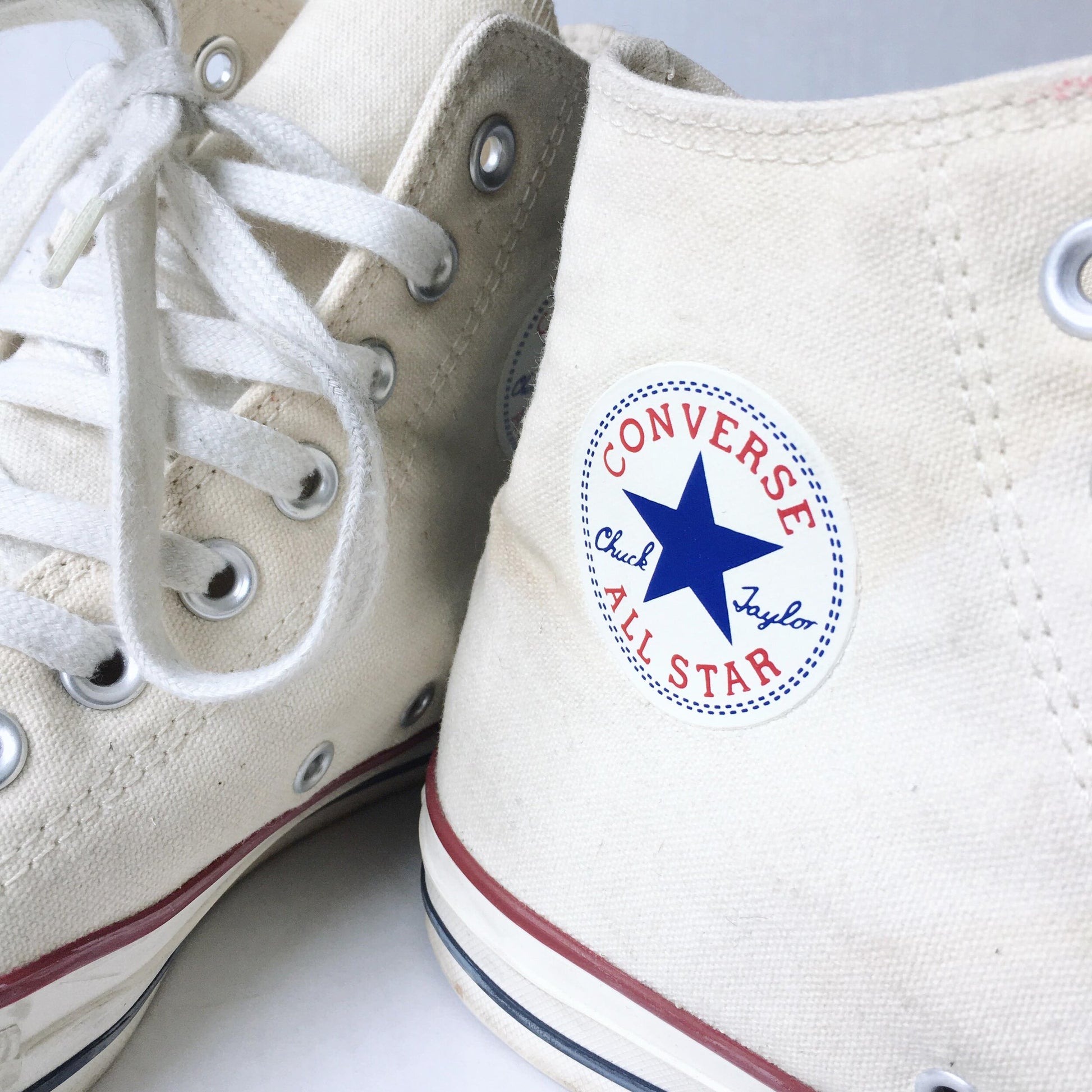 Item Description: Classic white Chuck Taylor’s get a soft punk touch with square studded heels. All those other kids better run.