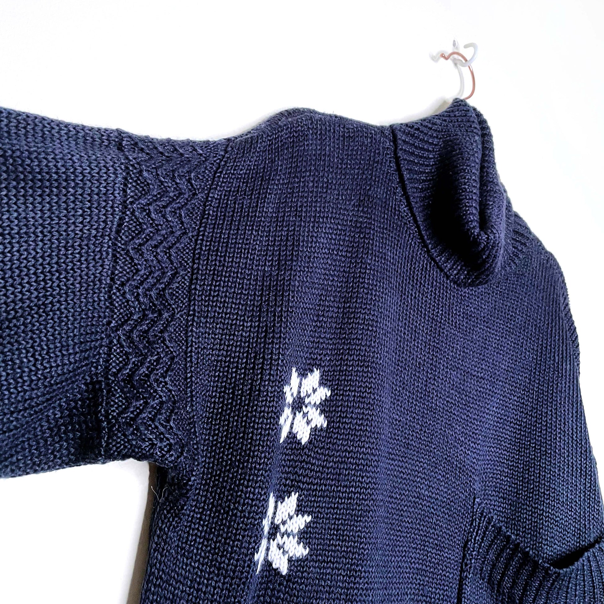 Item Description: This perfect holiday sweater by Daniel Hechter features a medium knit weight, shoulder sleeve detail and front pocket with white snowflake design. 85% acrylic 15% wool