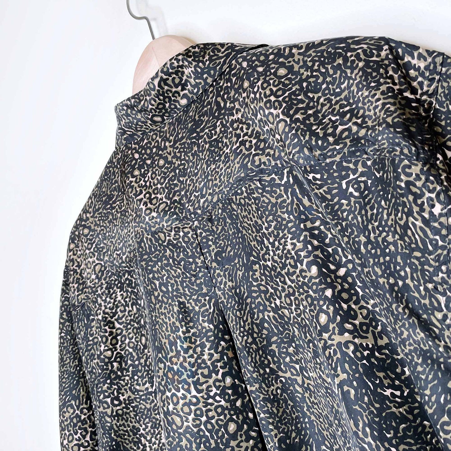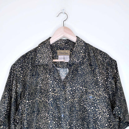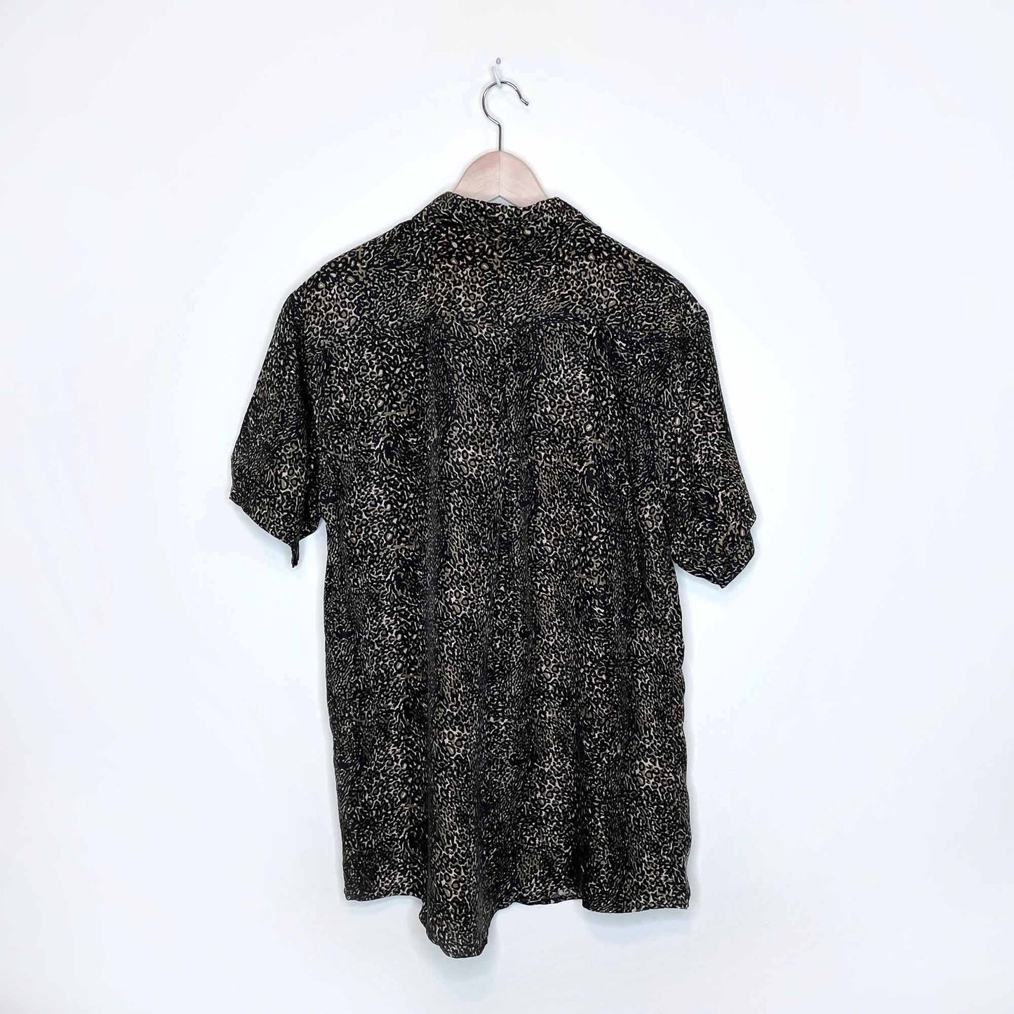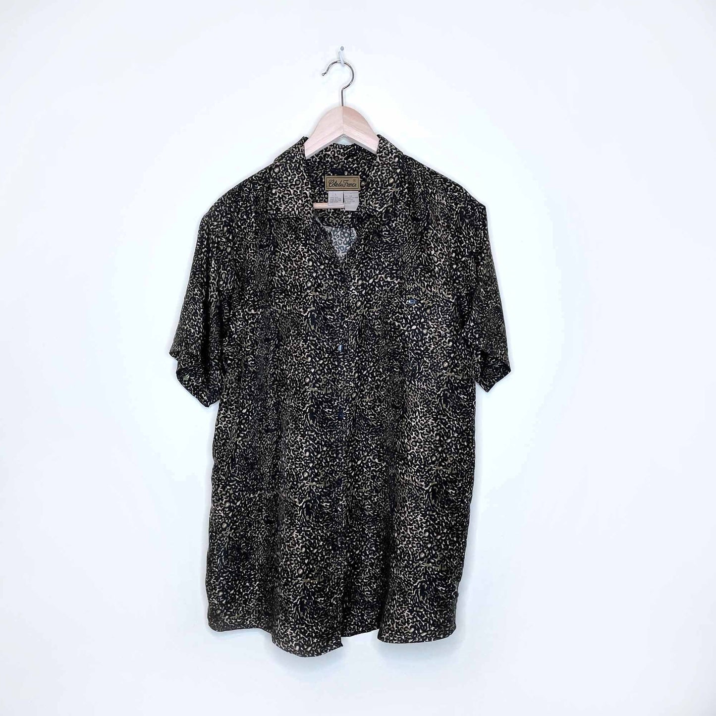 cote de france animal print silk button down short sleeve shirt - size large