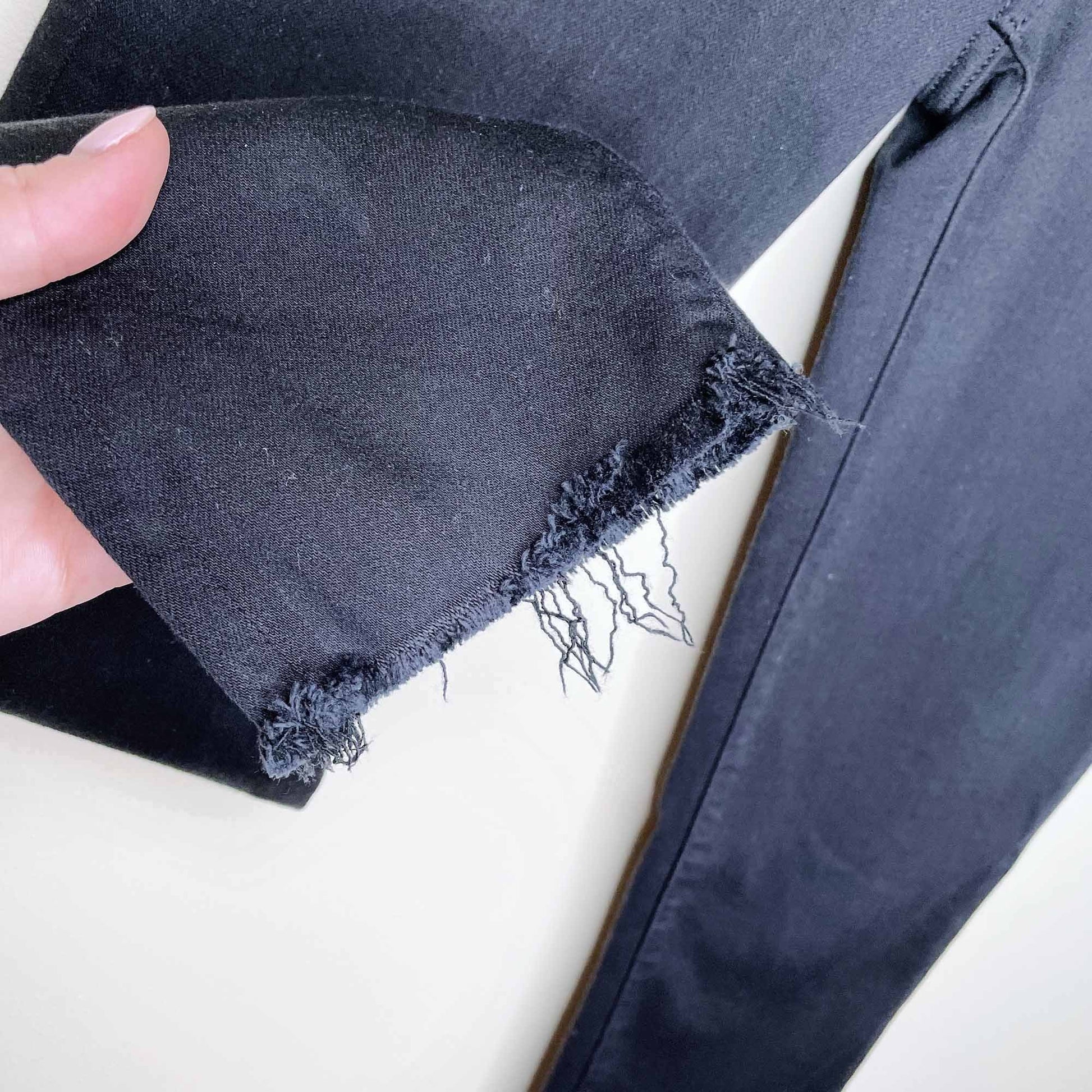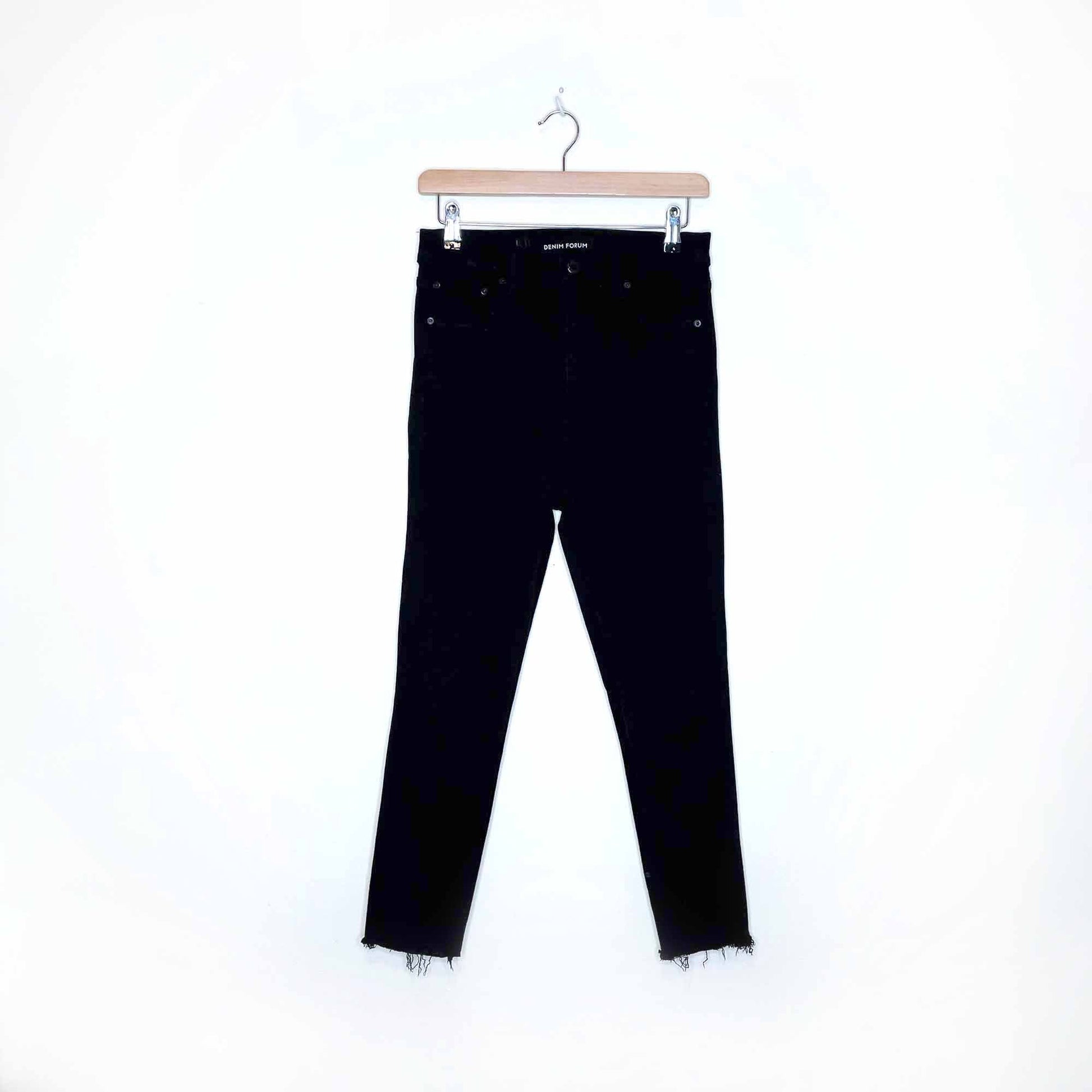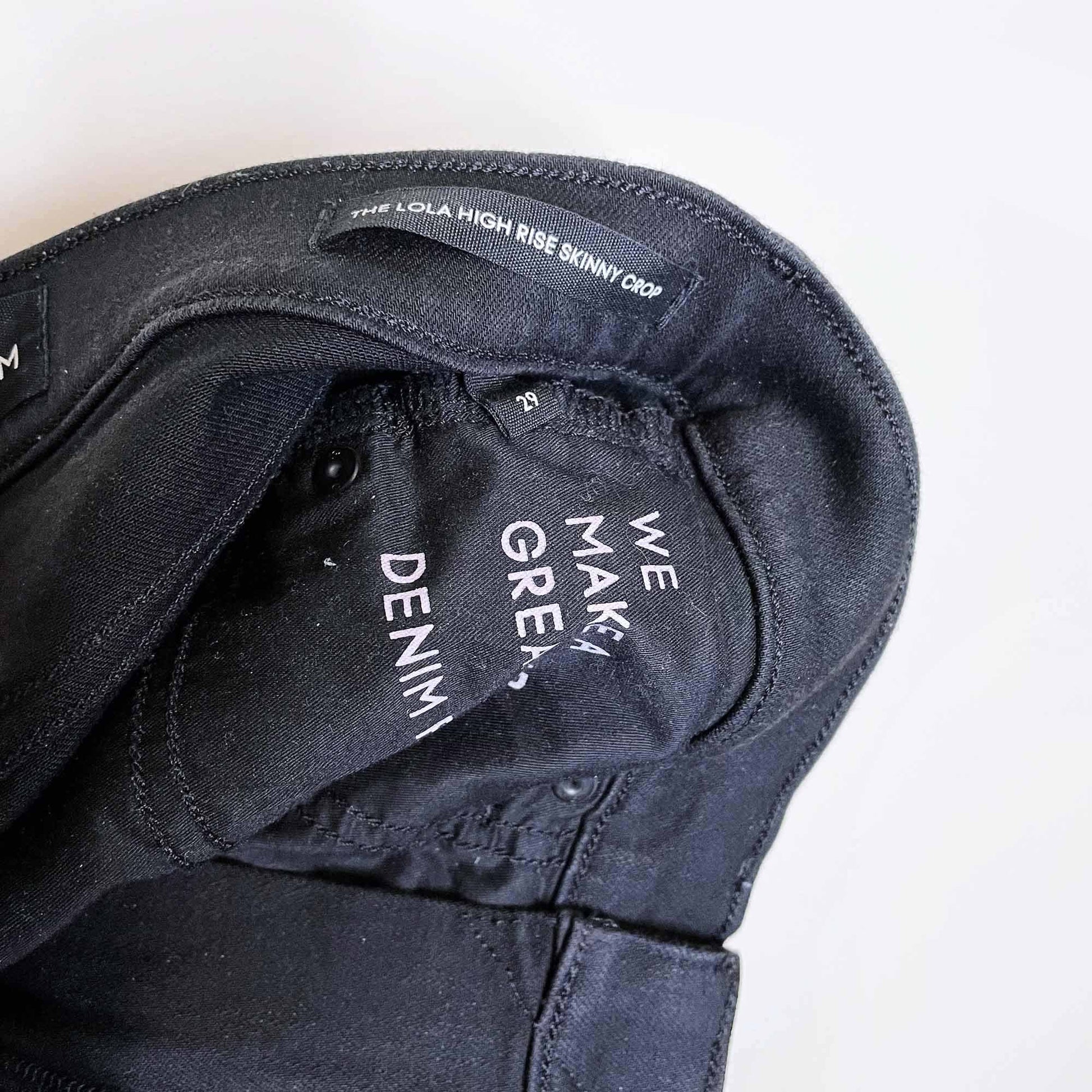 Item Description: Inspired by the innate charisma of a rock n' roll frontwoman, the Lola is a cult favourite and Denim Forum’s signature high-rise skinny. They're fitted through the hip and thigh with a skinny leg and cropped length. Innovative contouring pockets and Best Asset™ fabric hug here and lift there, creating curves in all the right places. They're made with premium Italian cotton that just gets better with time — the denim equivalent of classic rock. This version has a raw hem and comes in a true black wash. 43% viscose 33% cotton 17% lyocell 5% polyester 2% elastane
