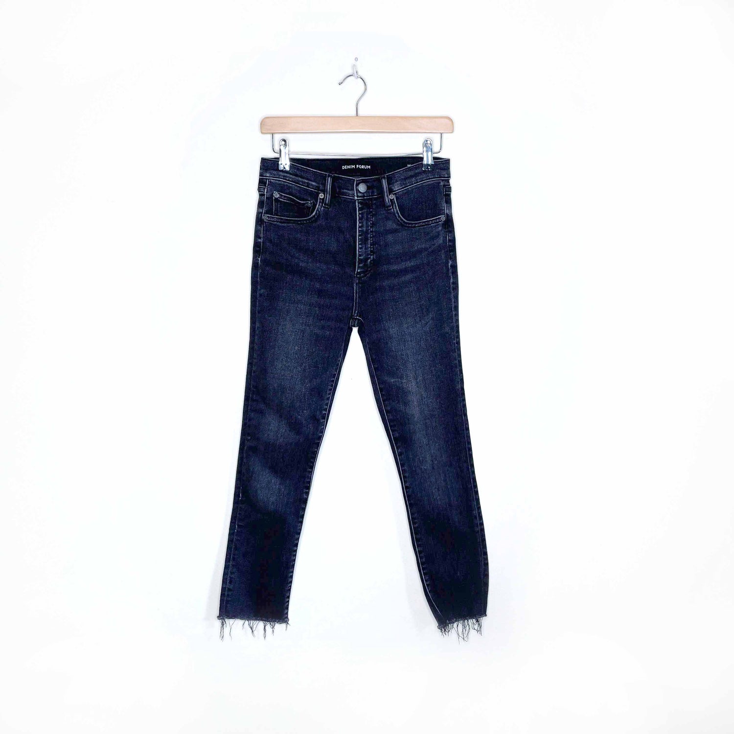denim forum lola the mid rise skinny crop fray jeans - size 27