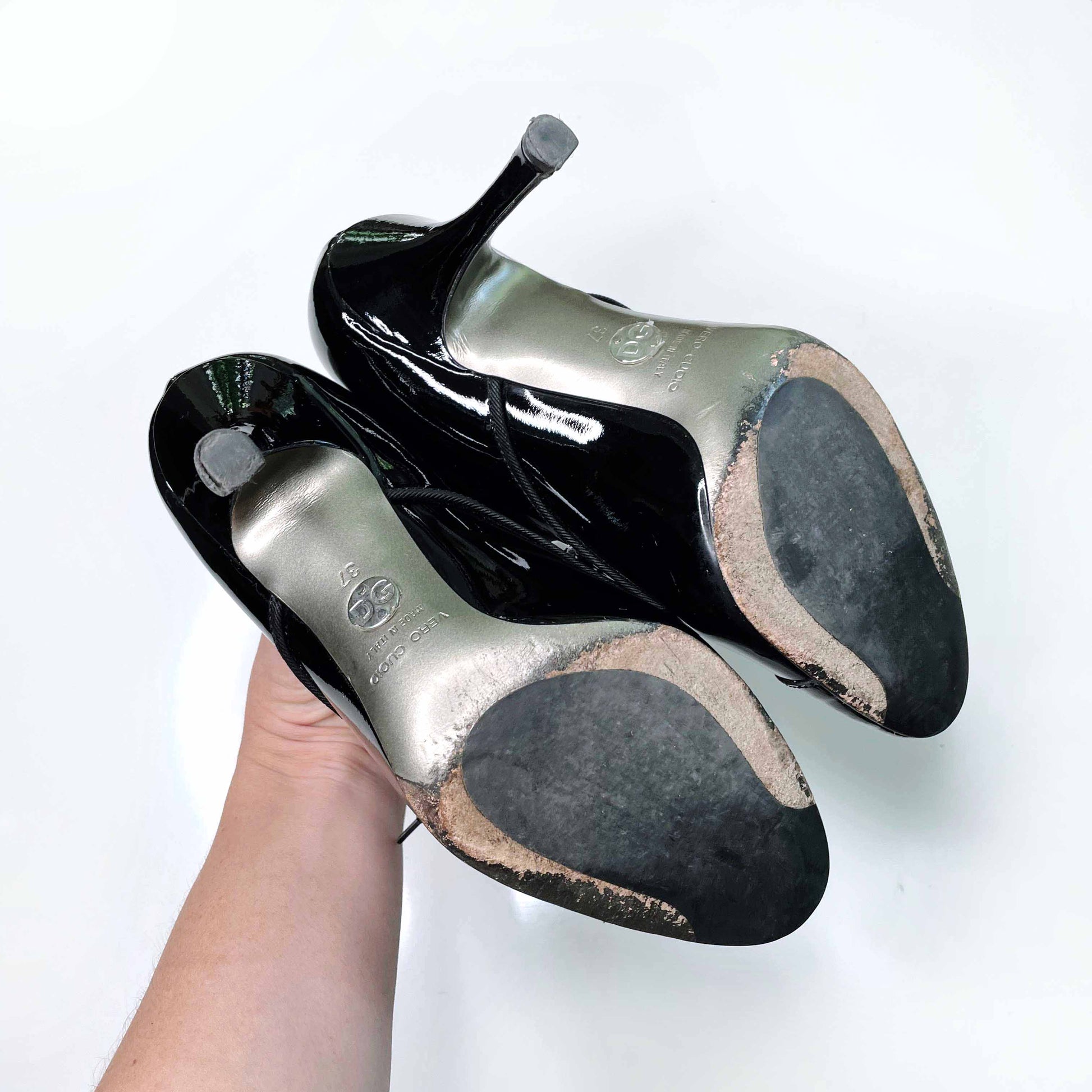 dolce & gabbana black patent baroque lace-up heels - size 37