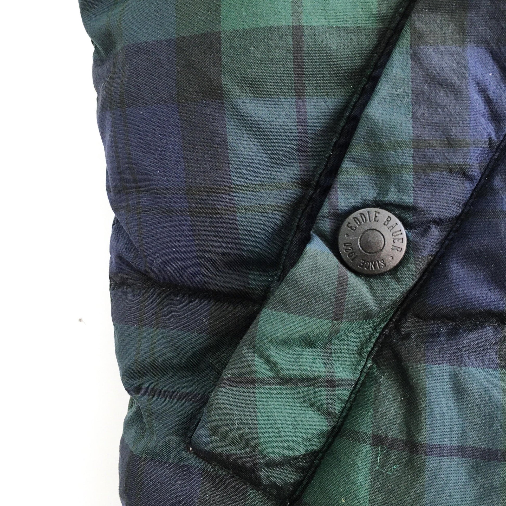 Item Description: Perfect for spring, this tartan goose down vest from Eddie Bauer features pockets and a zip front. Shell 100% Nylon Filling: Goose Down