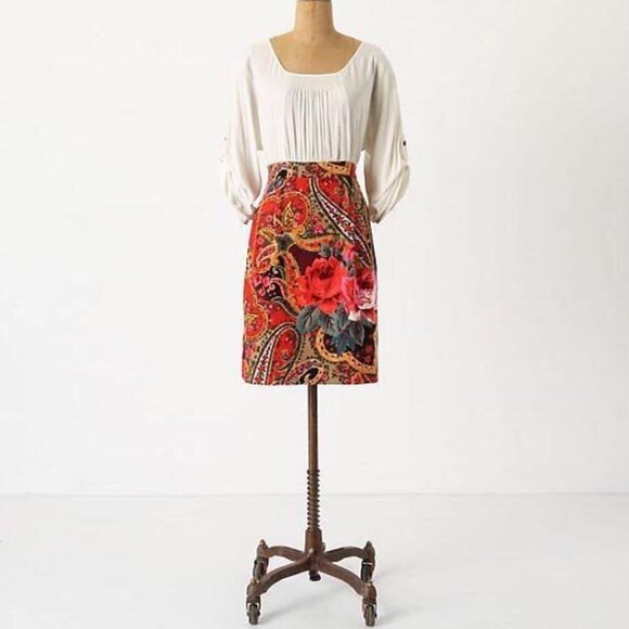 edme & esyllte peasant dress with micro cord paisley rose skirt - size 4