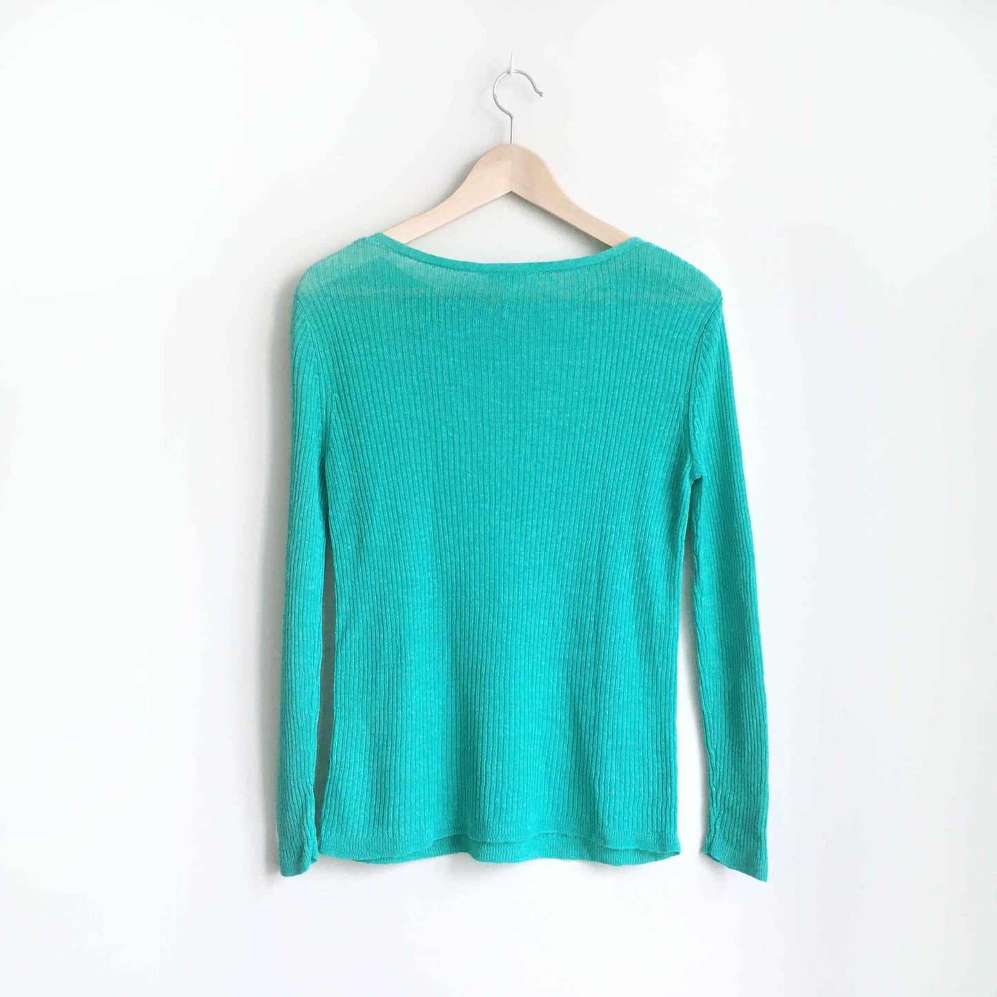 Item Description: This lightweight stretchy ribbed linen sweater from Eileen Fisher features an elegant boat neckline. 100% linen