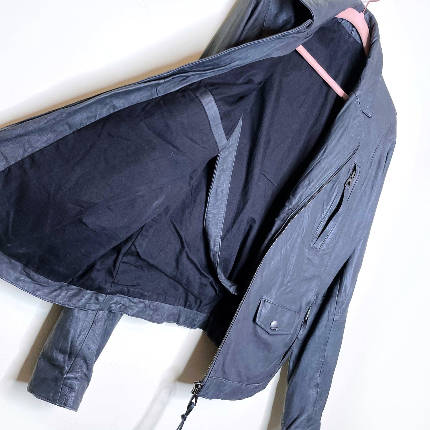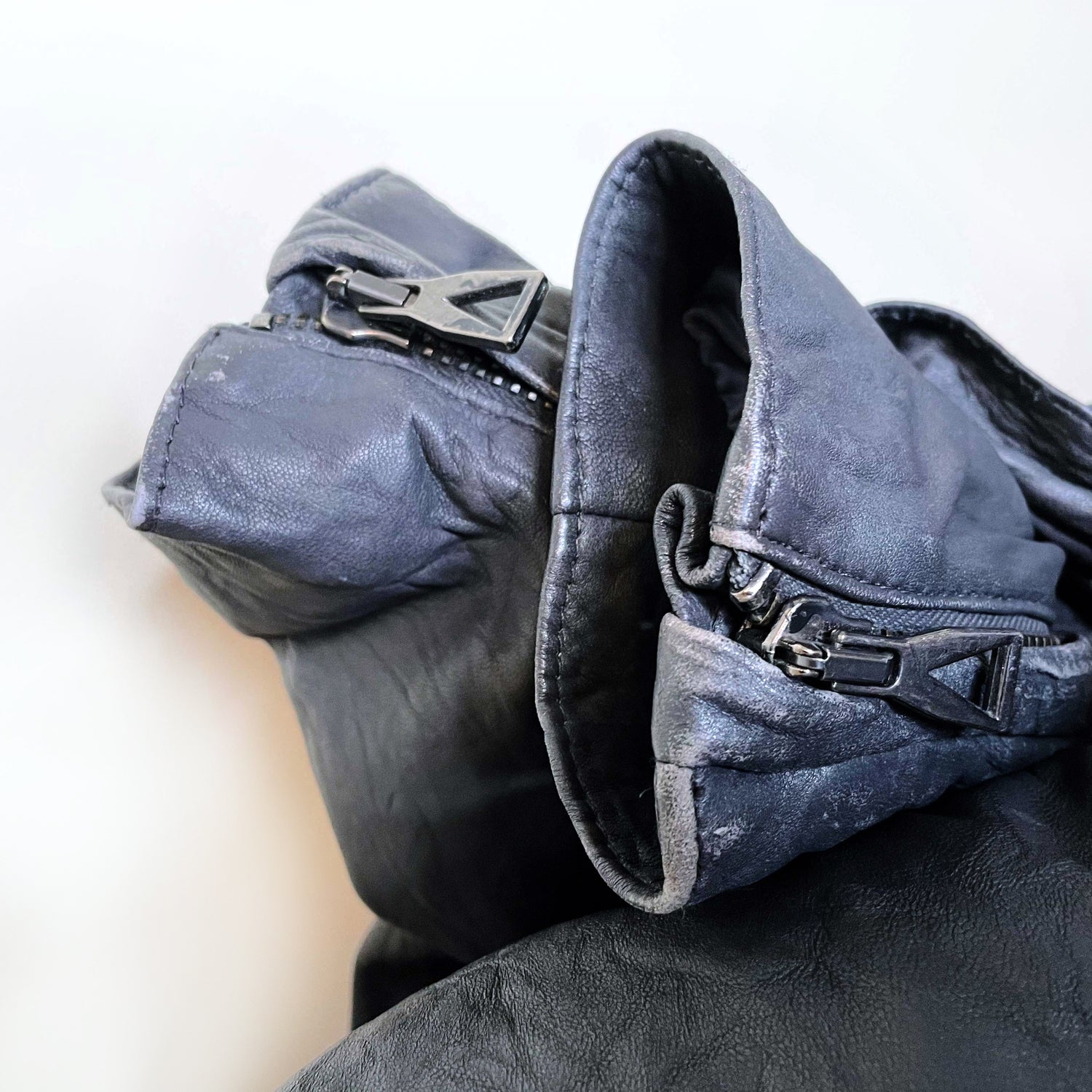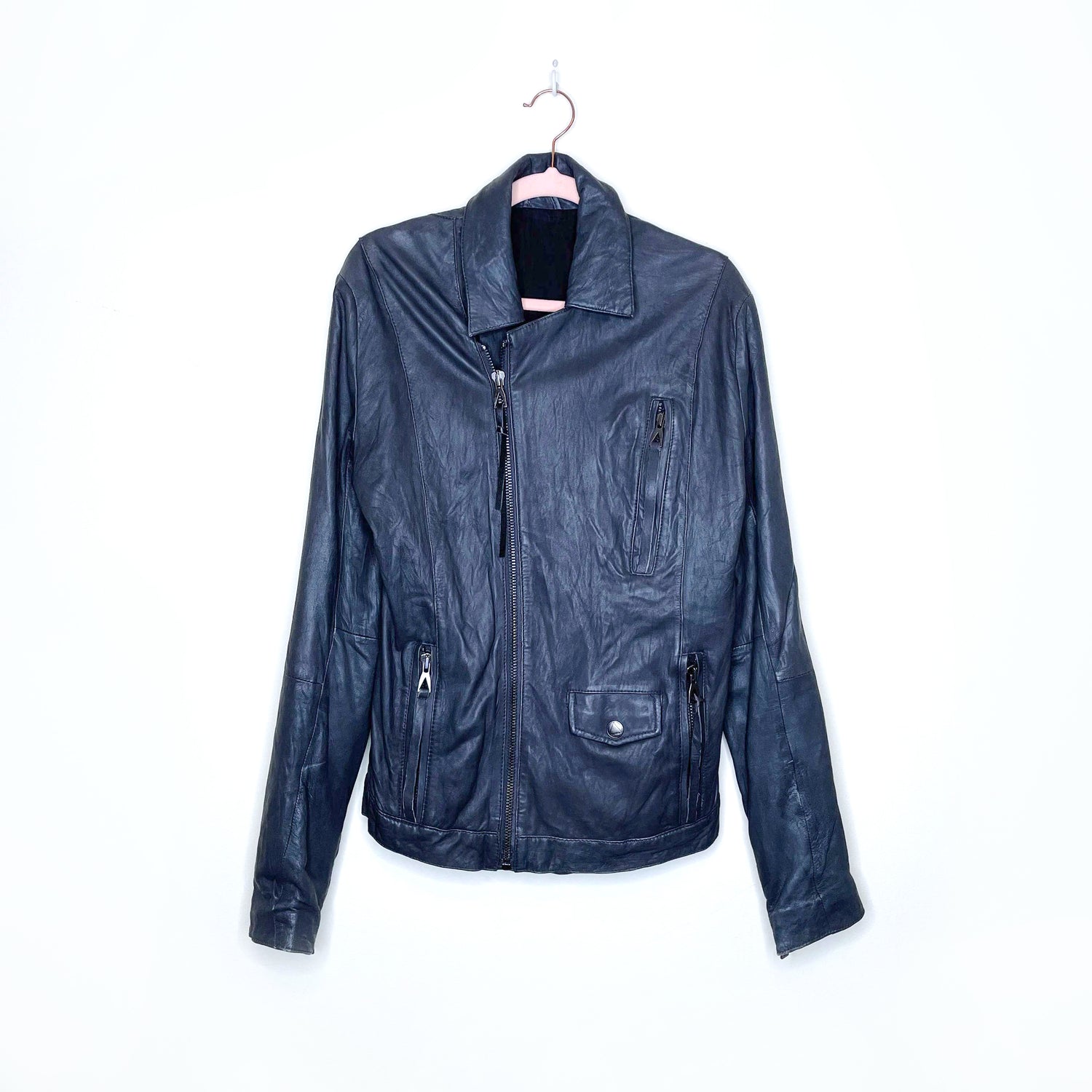 Item Description: With celeb sightings in hand, this euro leather jackets brand is having a moment - Eleven Paris. This tall moto jacket with asymmetrical zip features a medium weight, slouchy vibe with numerous interior and exterior pockets. 100% leather