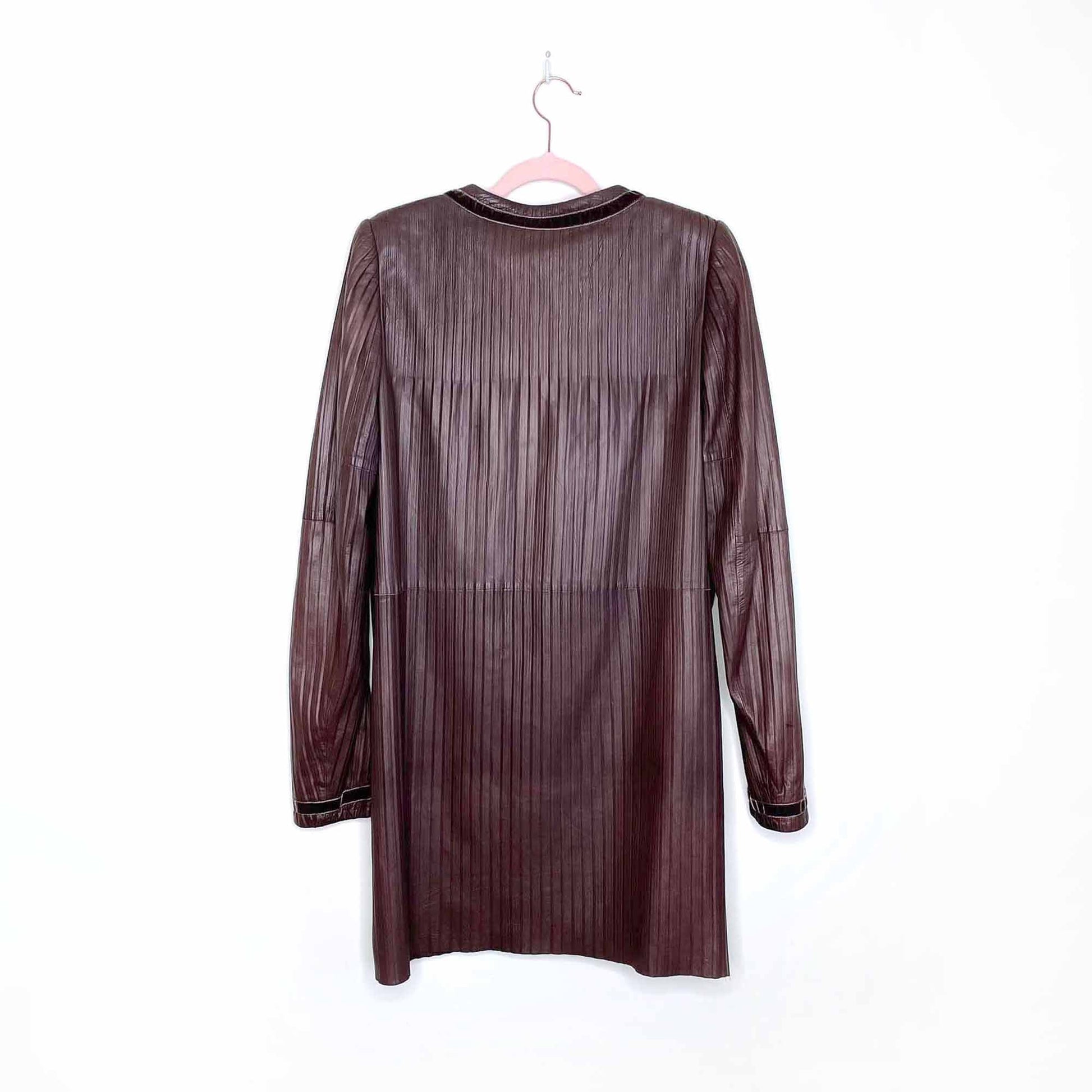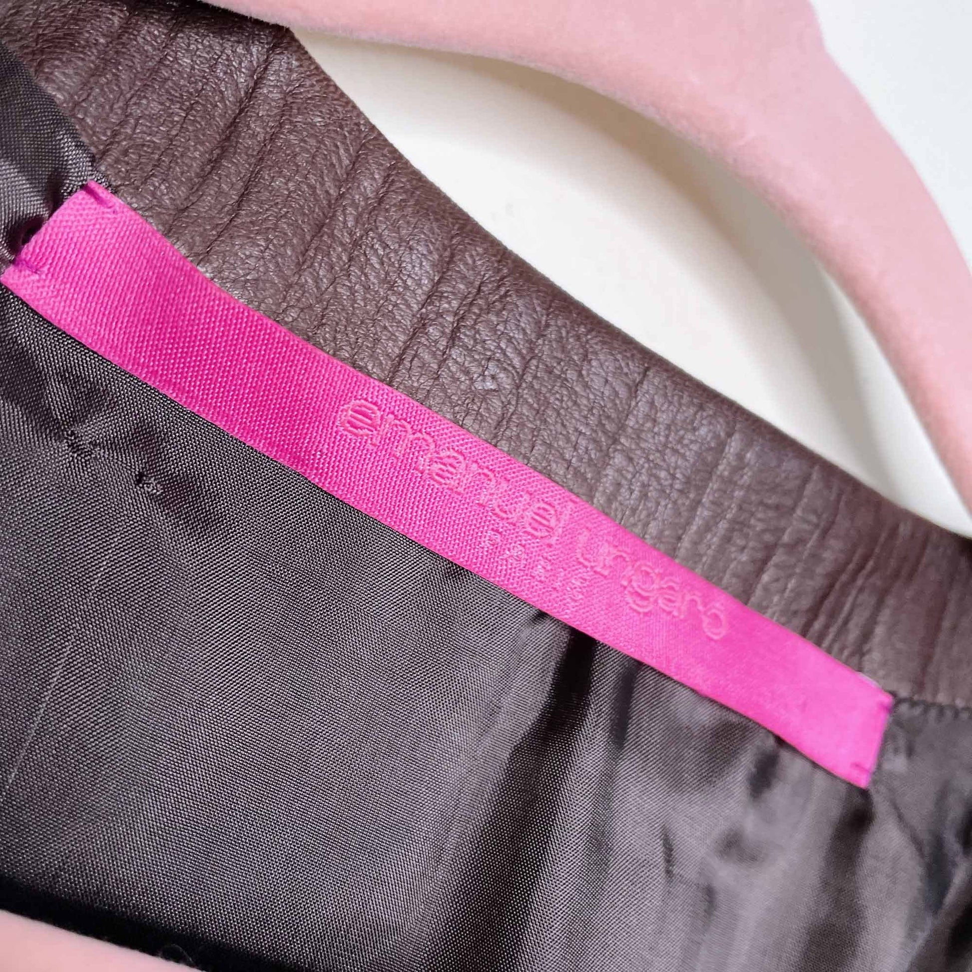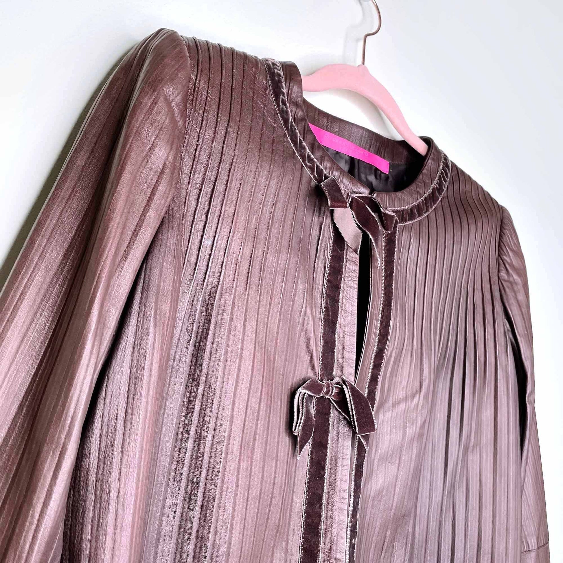 emanuel ungaro long brown leather jacket with velvet trim - size xs/sm