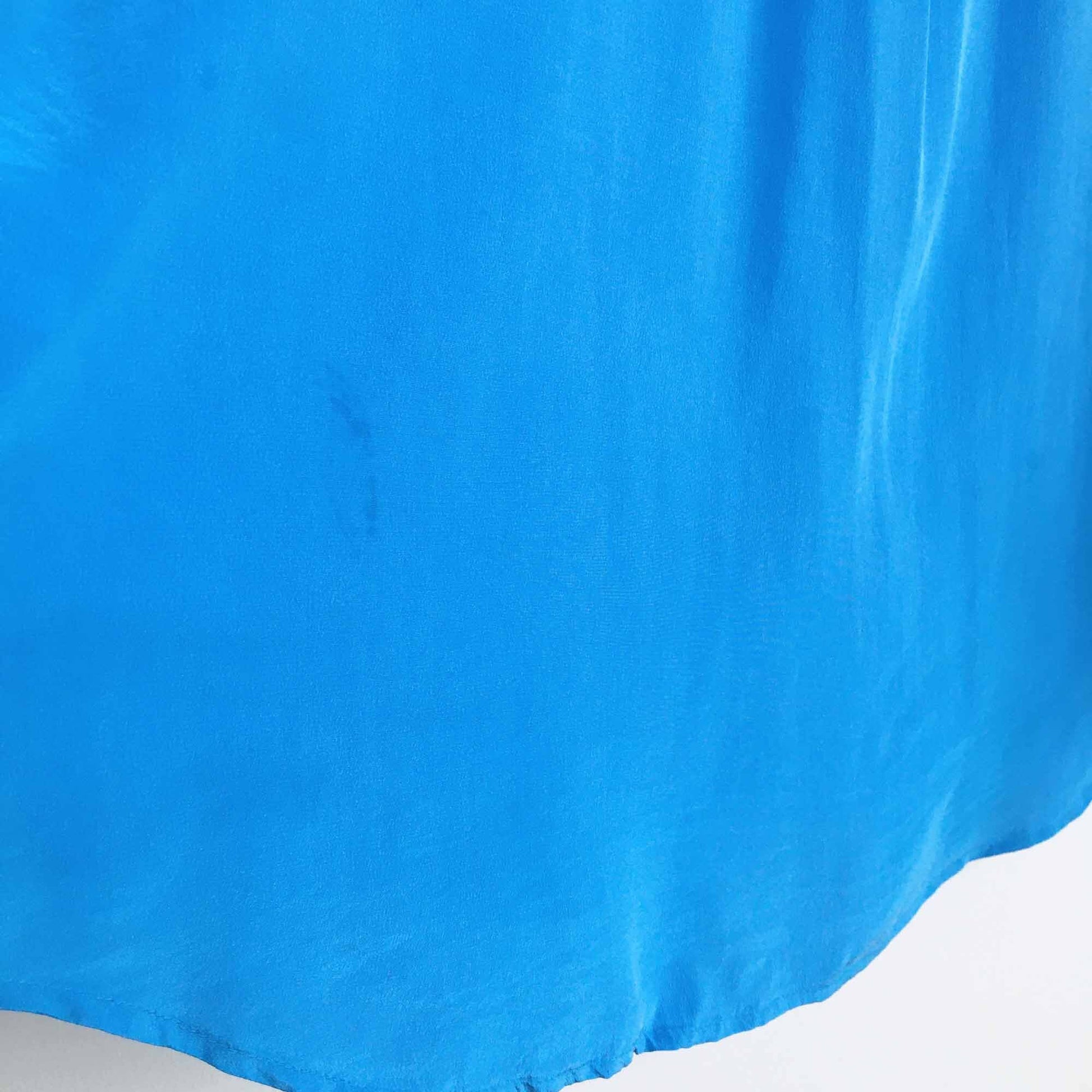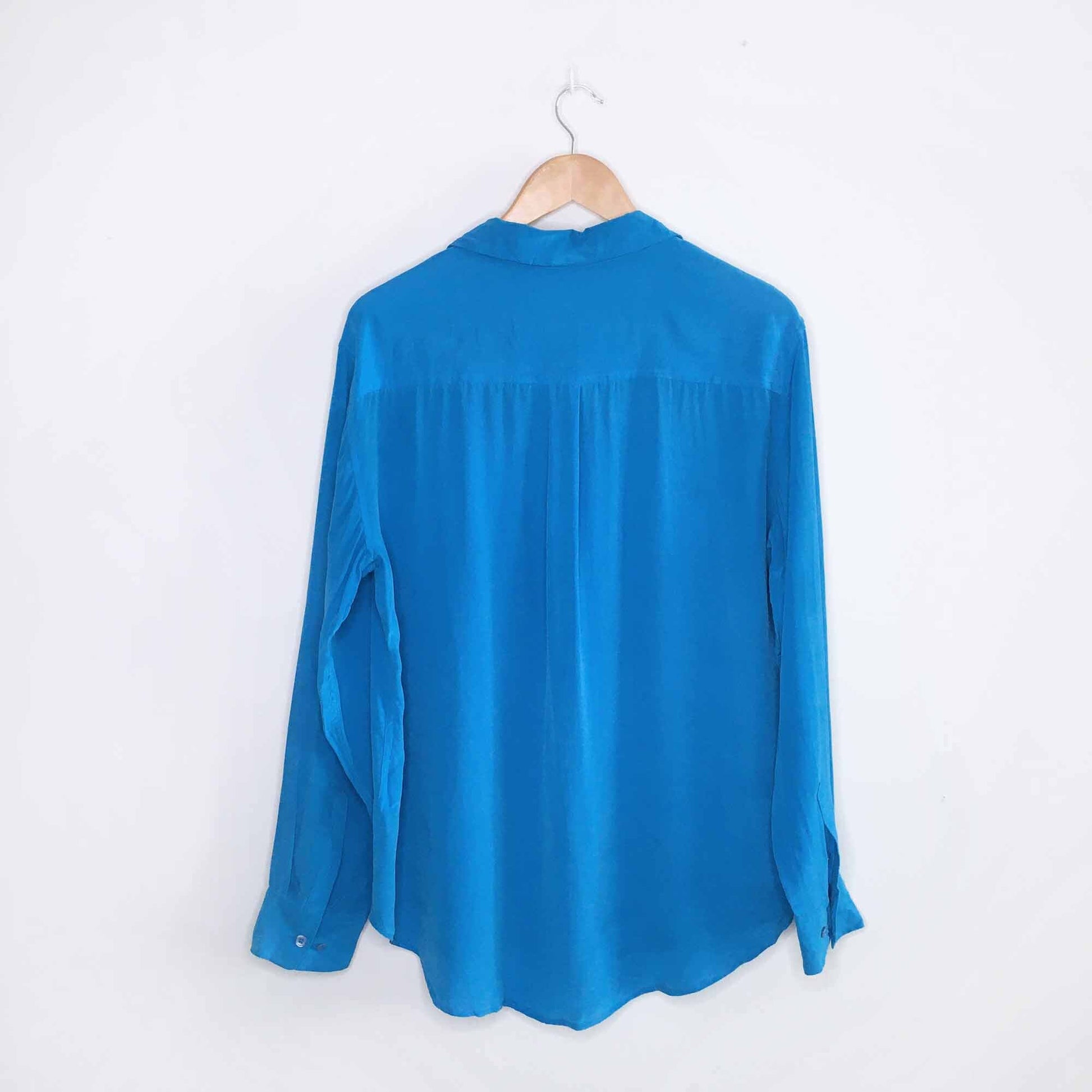 Item Description: This effortless silk blouse from Equipment features double front cargo pocket in an electric blue colour. 100% silk