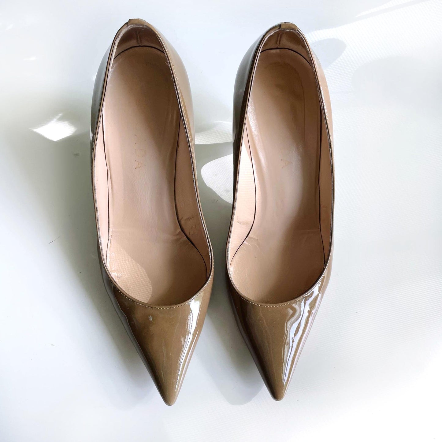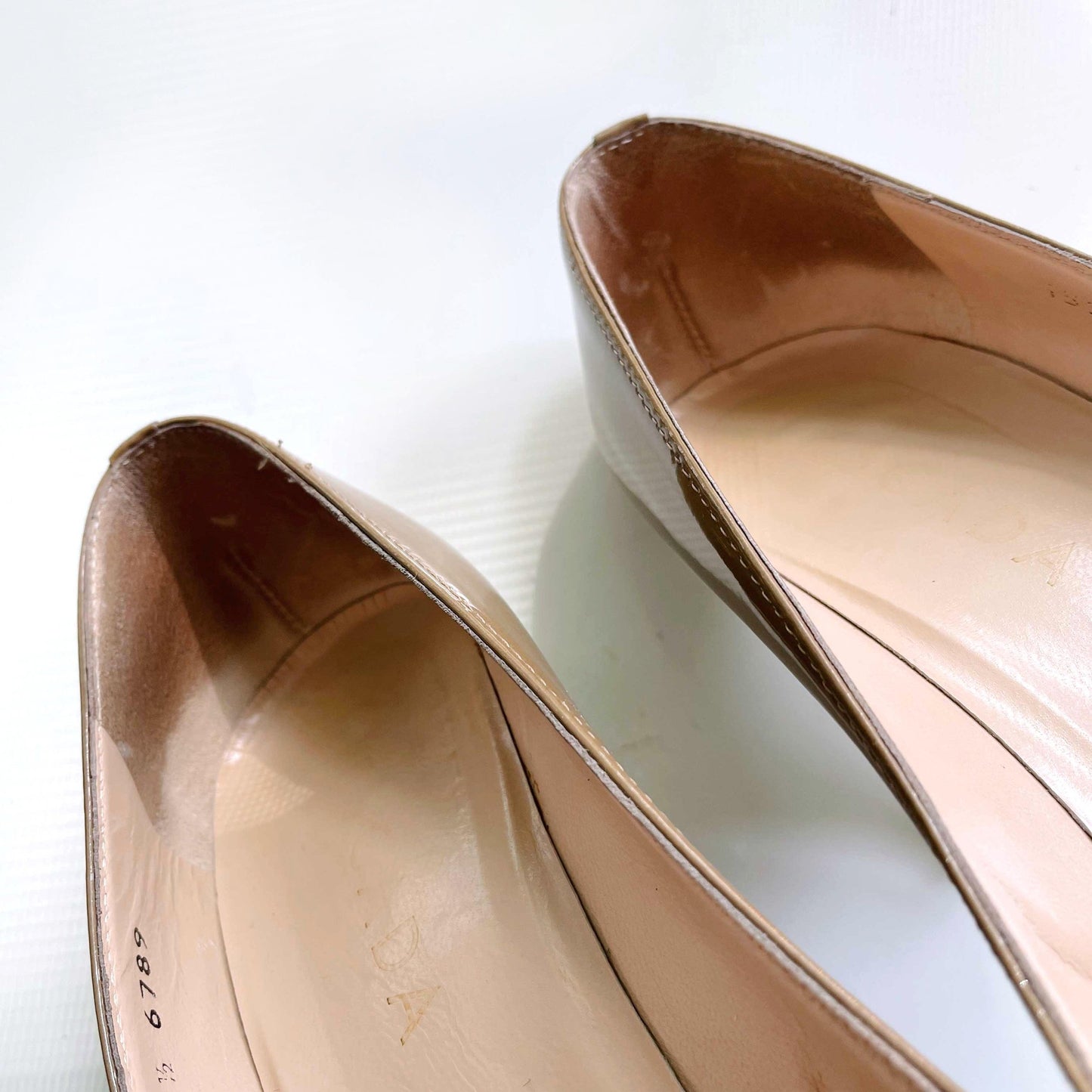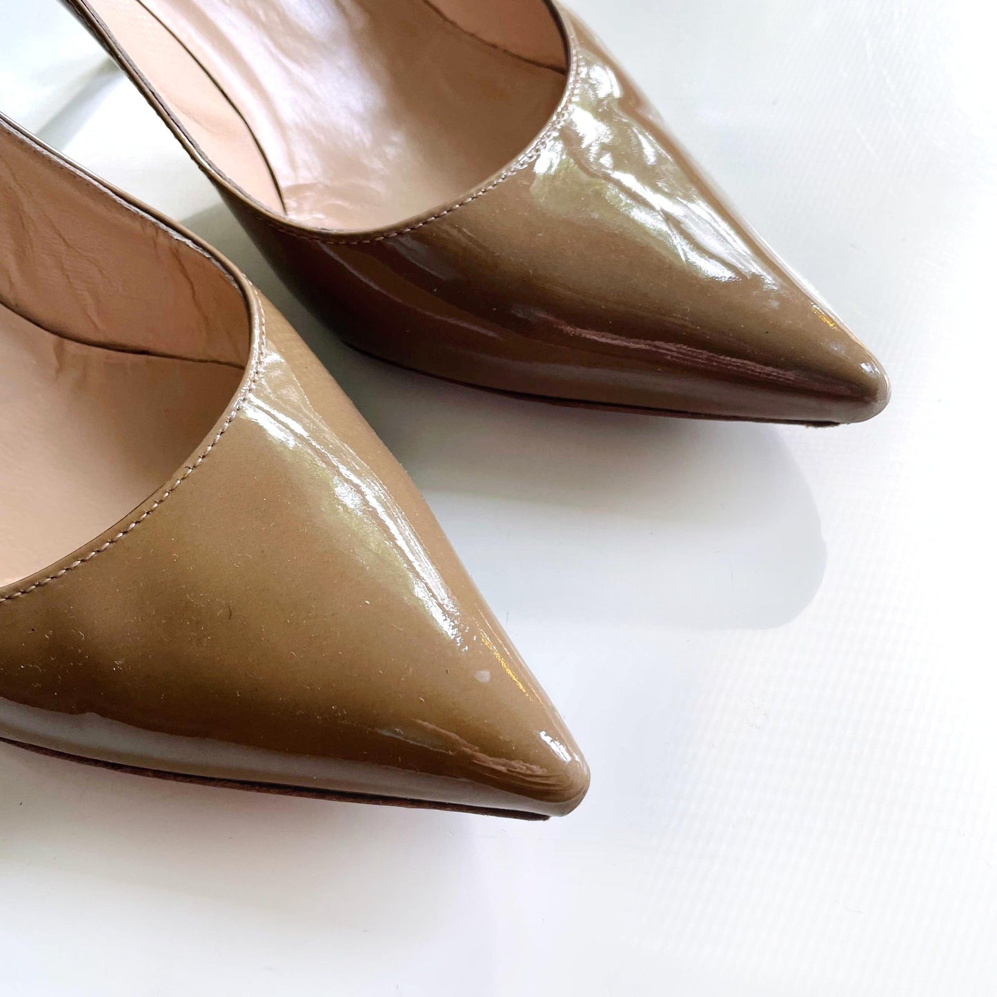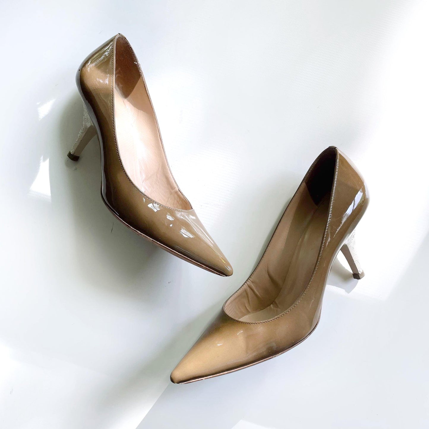 escada nude patent heel with white heel - size 38.5