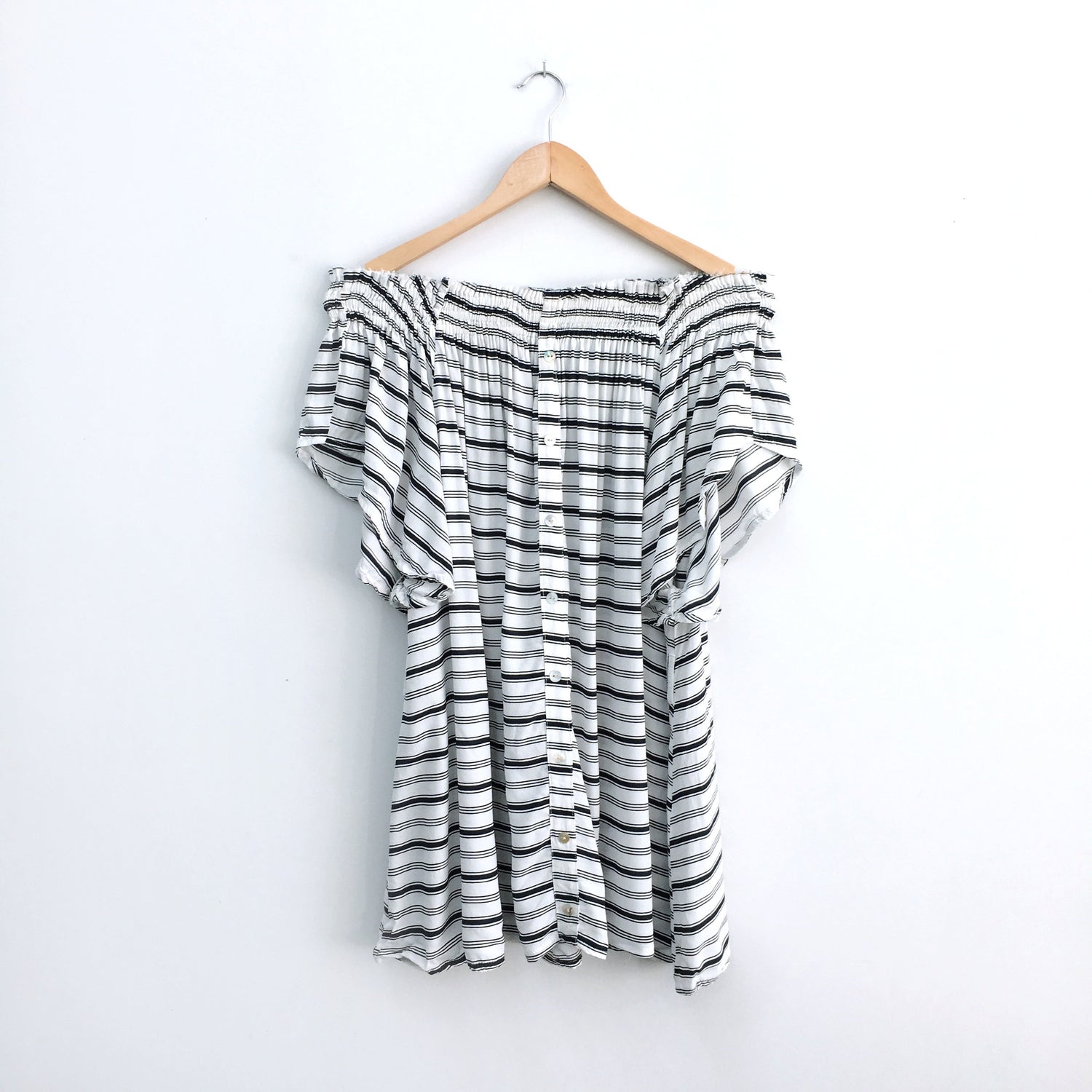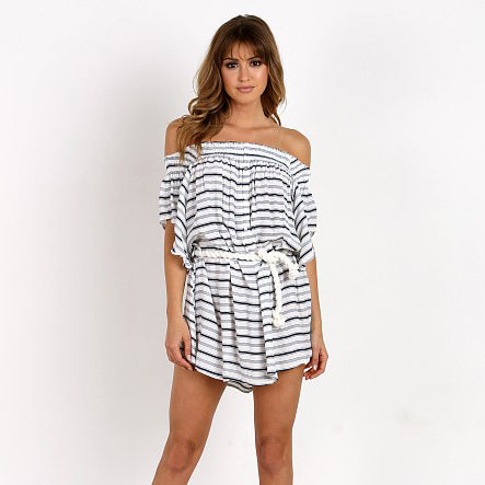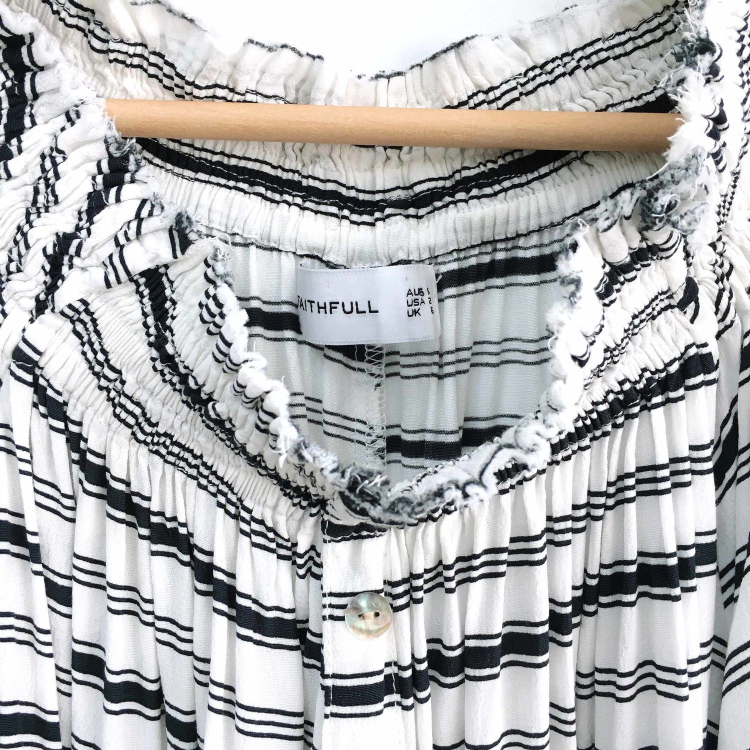 faithfull the brand off shoulder dress in amsterdam stripe - size 2