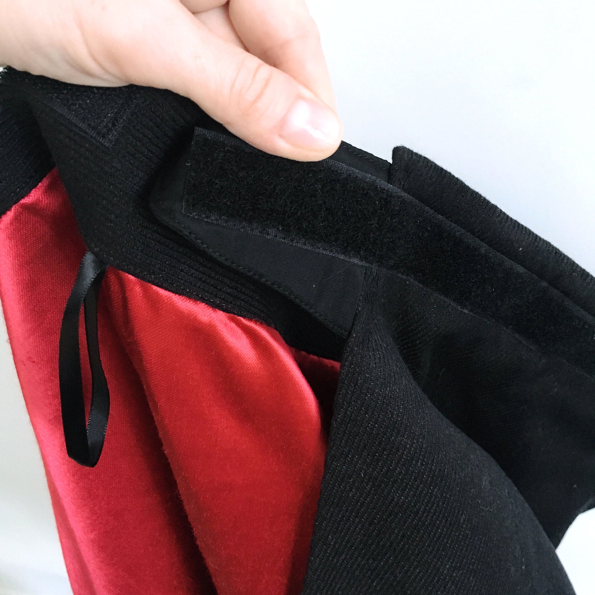 Item Description: This ultra-unique wool snow skirt has all the cool winter Russian vibes you could every hope for. Super easy to wear, simply hold behind your waist like a towel and close one side over the other - it just velcro’s shut! Features faux fur trim and bright red satin interior. Wear over tights or thick stockings.