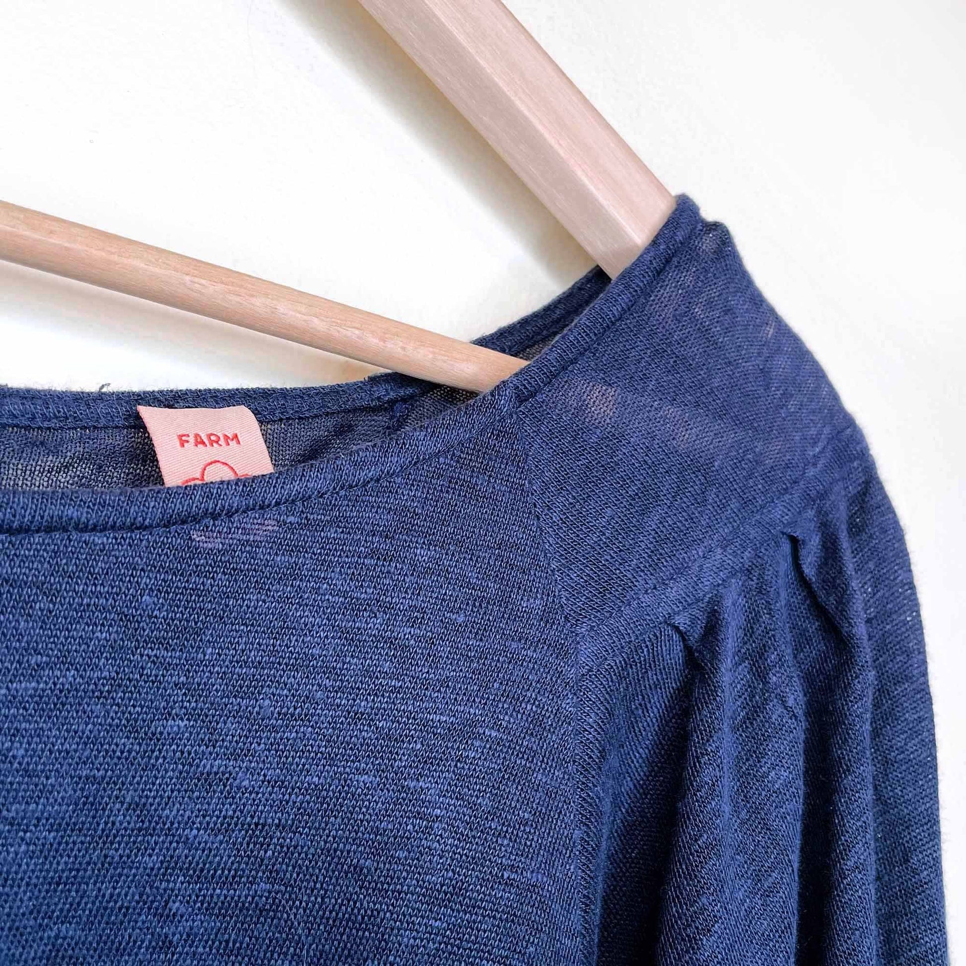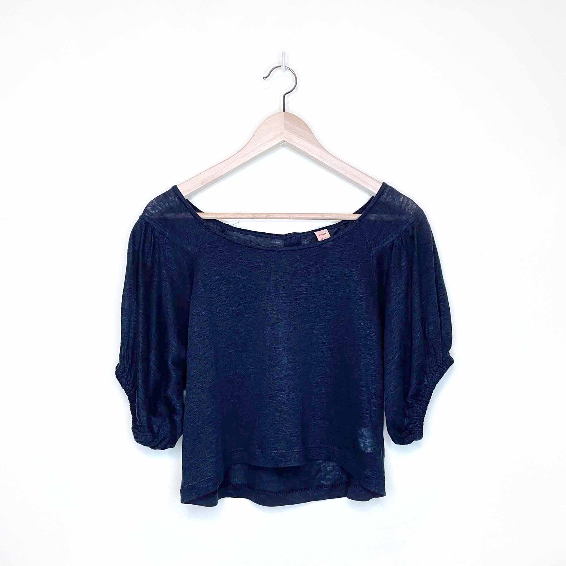 farm rio 100% linen cropped puff sleeve tee - size medium
