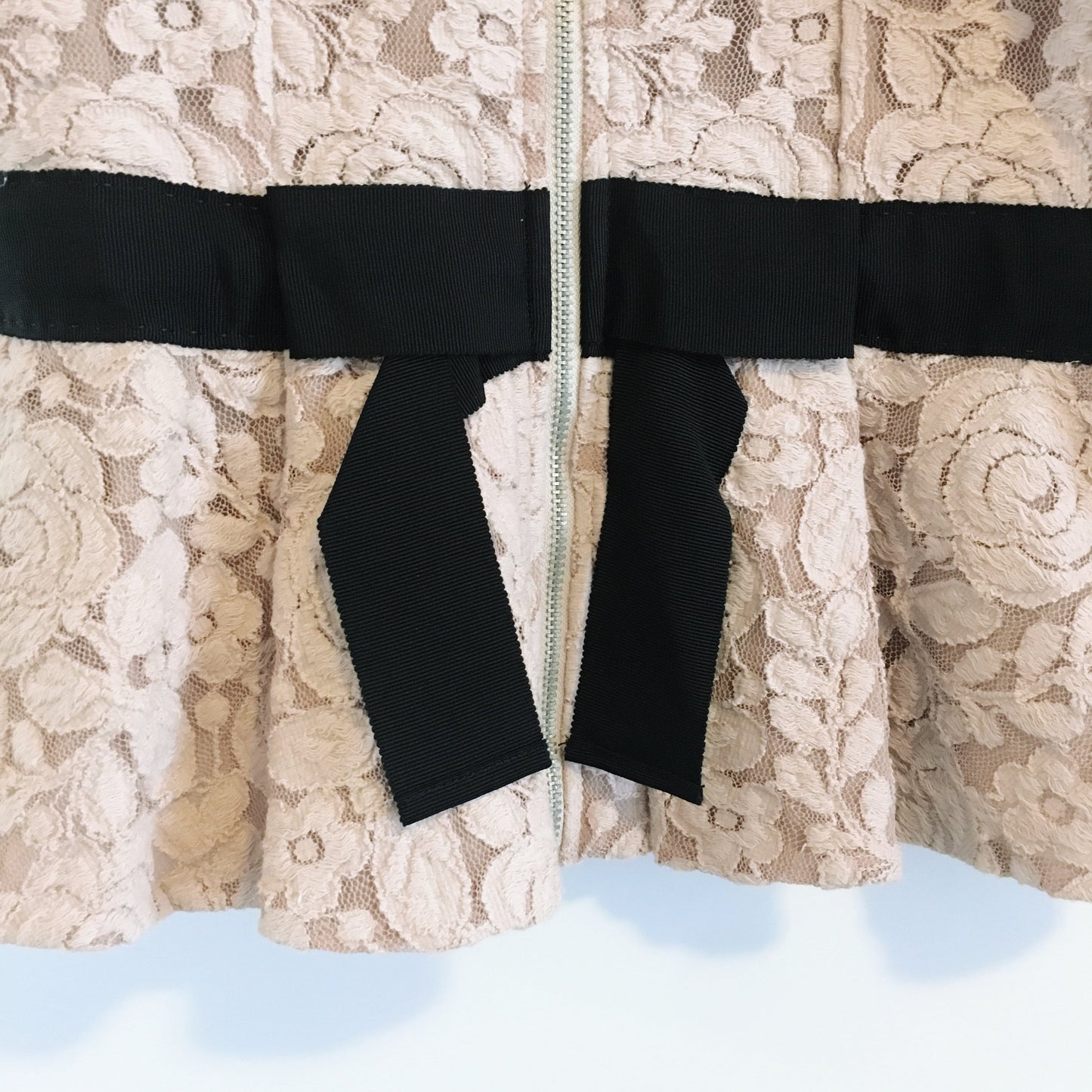 Item Description: This lovely pink lace structured top is uber feminine. With front pleating and sewn-in ribbon detail, this luxurious blouse can take you from the workplace to evening socials.