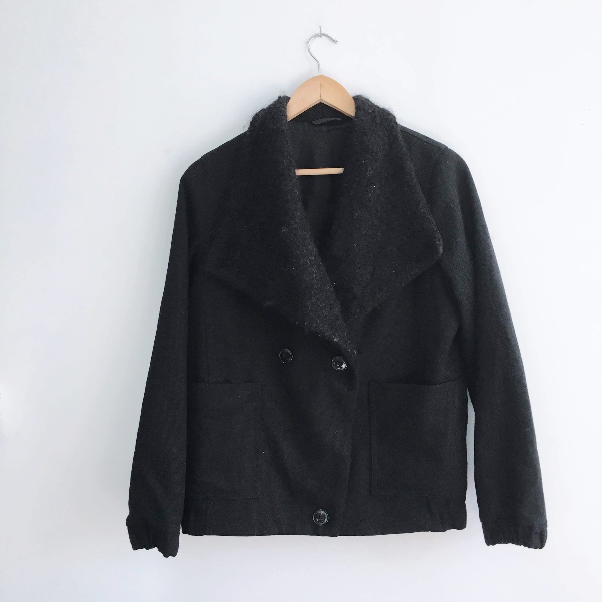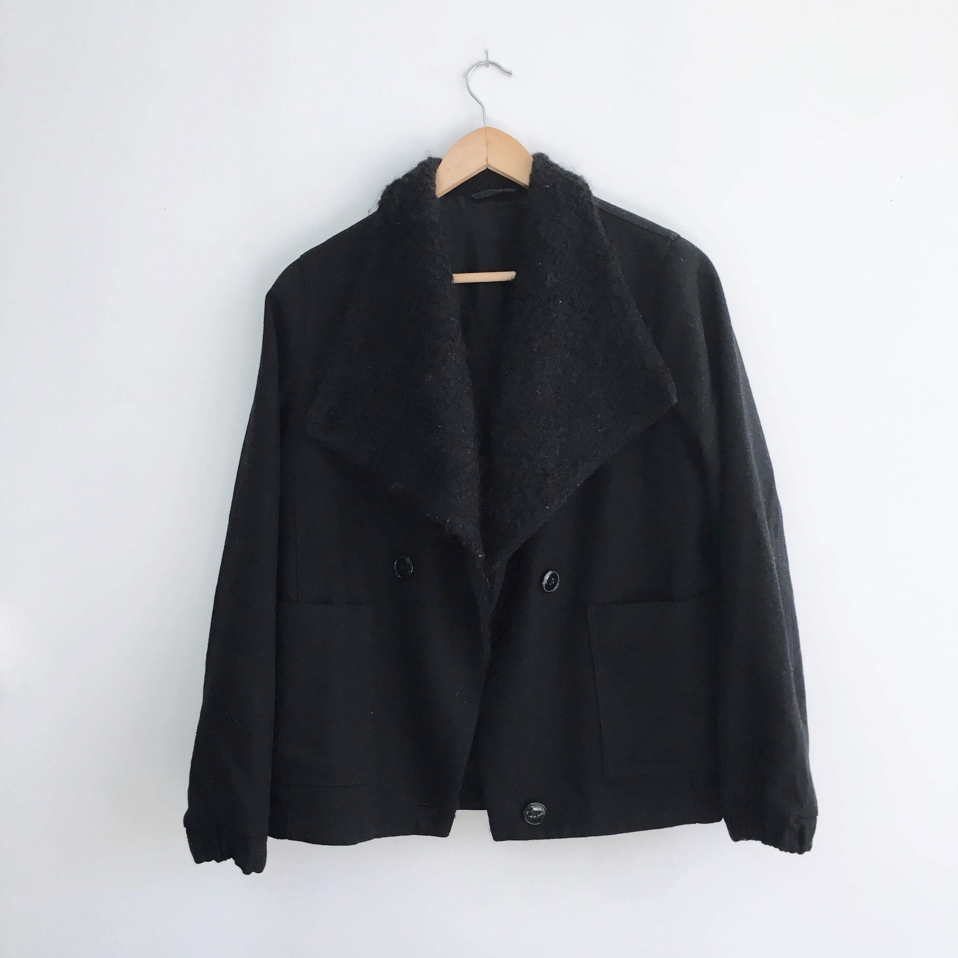 Item Description: A stylish wool bomber from sustainable designer Filippa K, with cinched elastic waist on sides, to give a slick front and back profile. This oversized jacket features a curly wool hair trimmed lapel, interior stash pocket and deep front pockets.