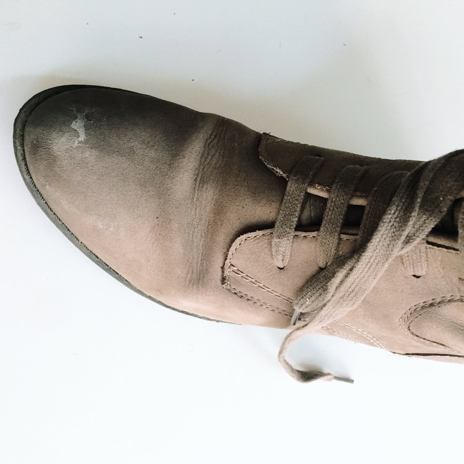 Condition: GOOD - only minor salt deposit on toes, rest of leather and boot is in GREAT condition. Salt is easily removable with proper suede/leather cleaner. Consult an expert.