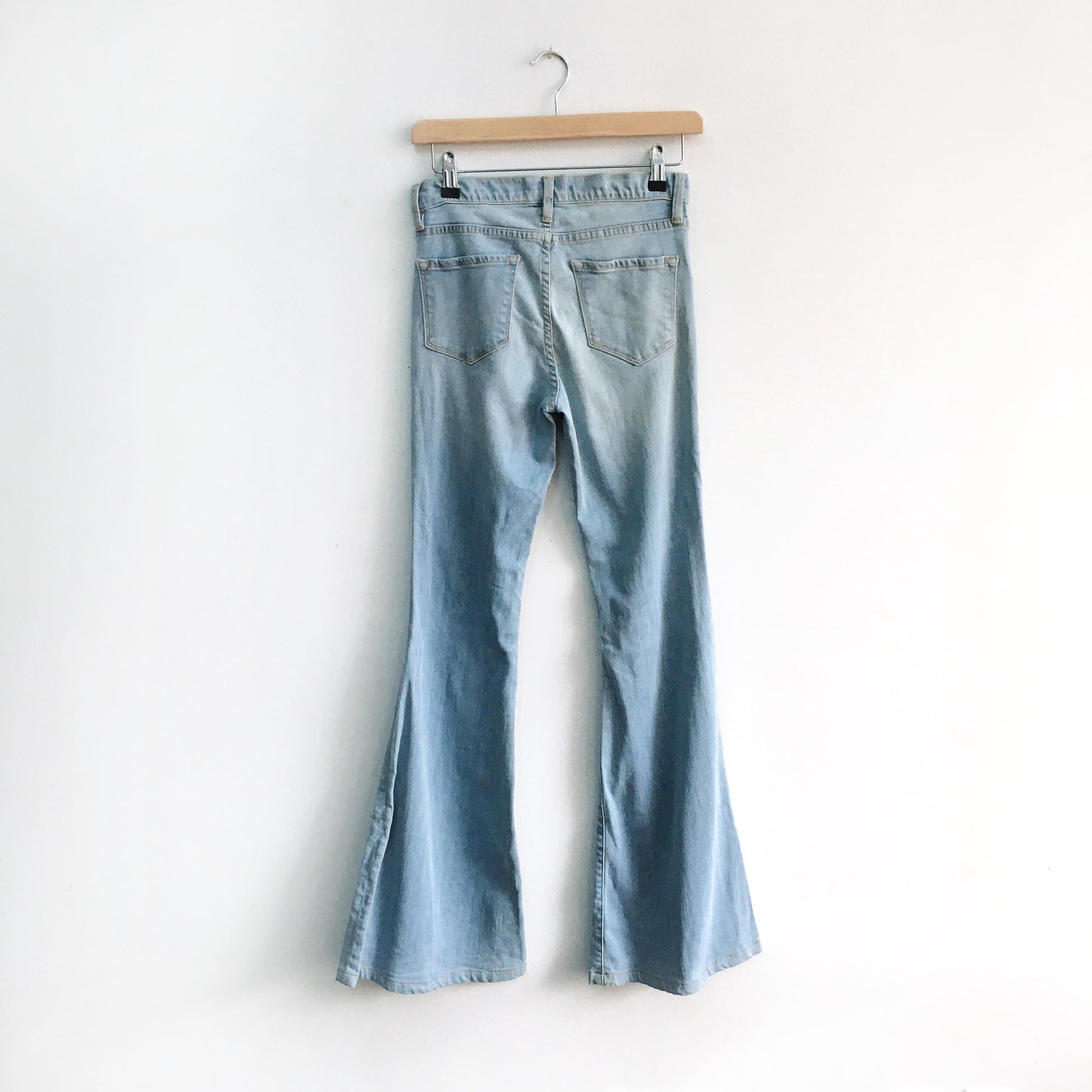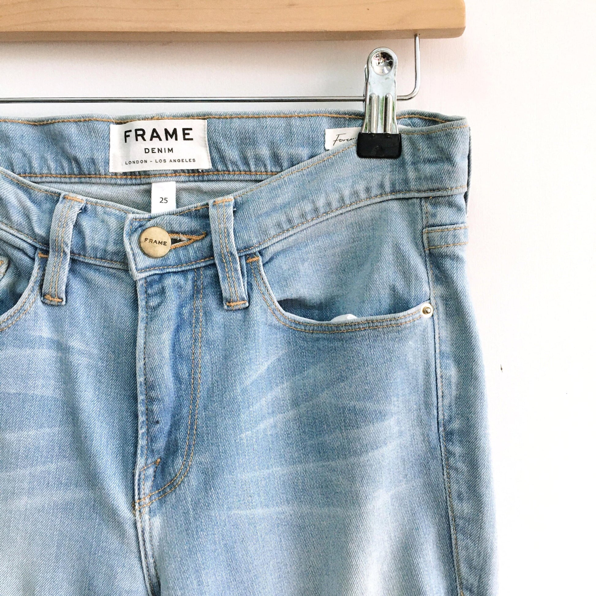 Item Description: Part of a collaboration between FRAME and supermodel Karlie Kloss, these extended-inseam jeans are designed for longer legs. Fading and a flared profile lend a vintage-inspired look to these FRAME jeans. 5-pocket styling. Single-button closure and zip fly. 93% cotton 5% polyester 2% lycra