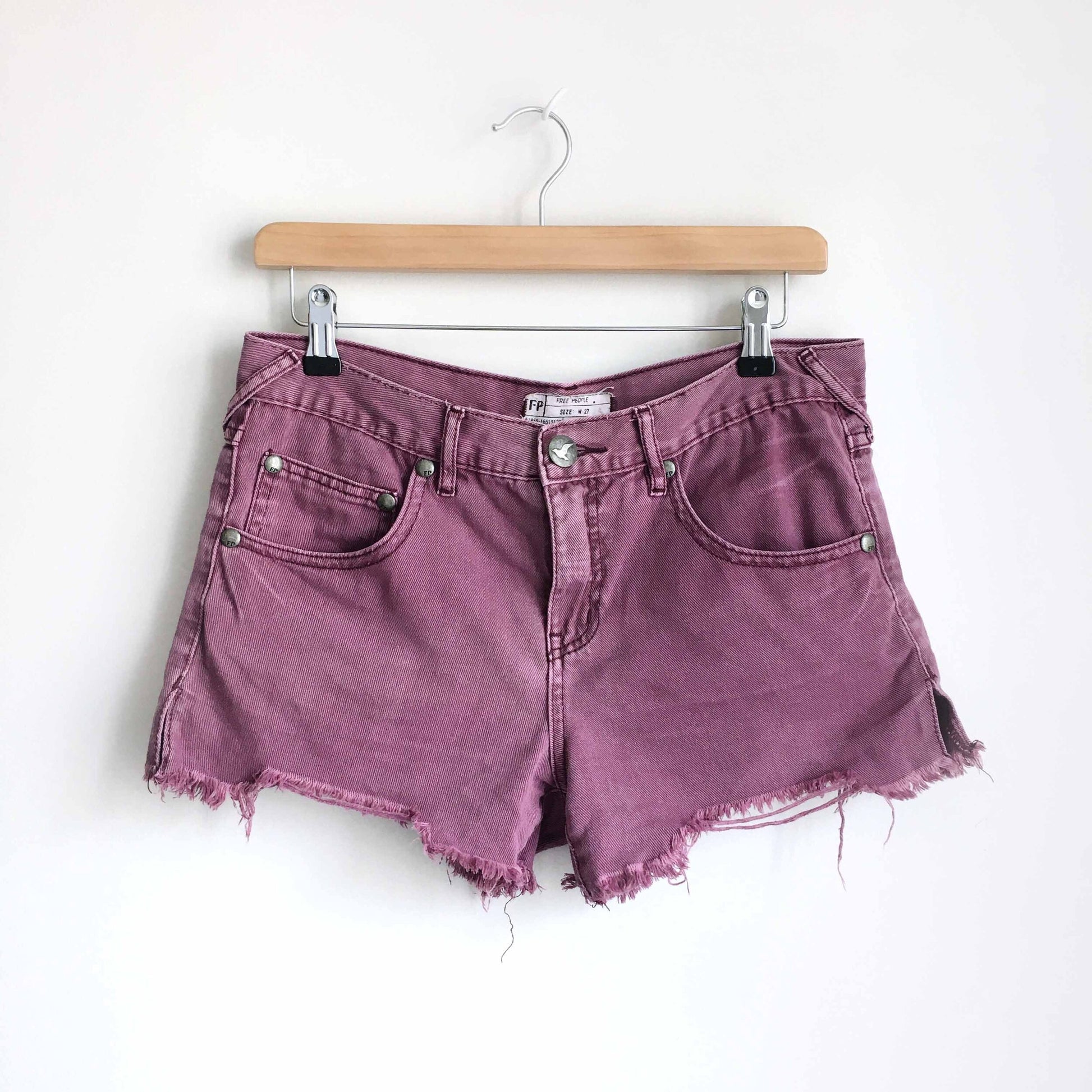 Item Description: A classic summer style, these cut-off shorts from Free People feature a mid to high rise, raw edge and side slits with an overall purple indigo hue. 100% cotton