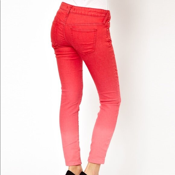 free people dip dye red ombre skinny jeans - size 26