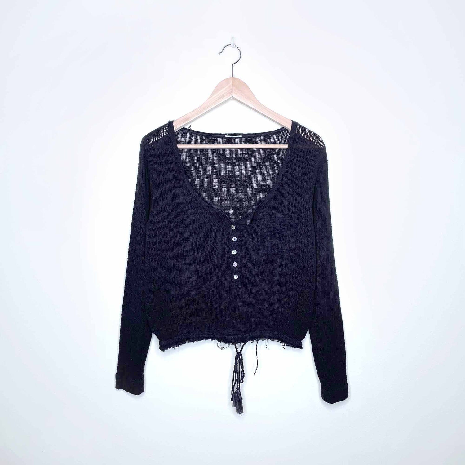 free people gauzy long sleeve tie waist top - size xs