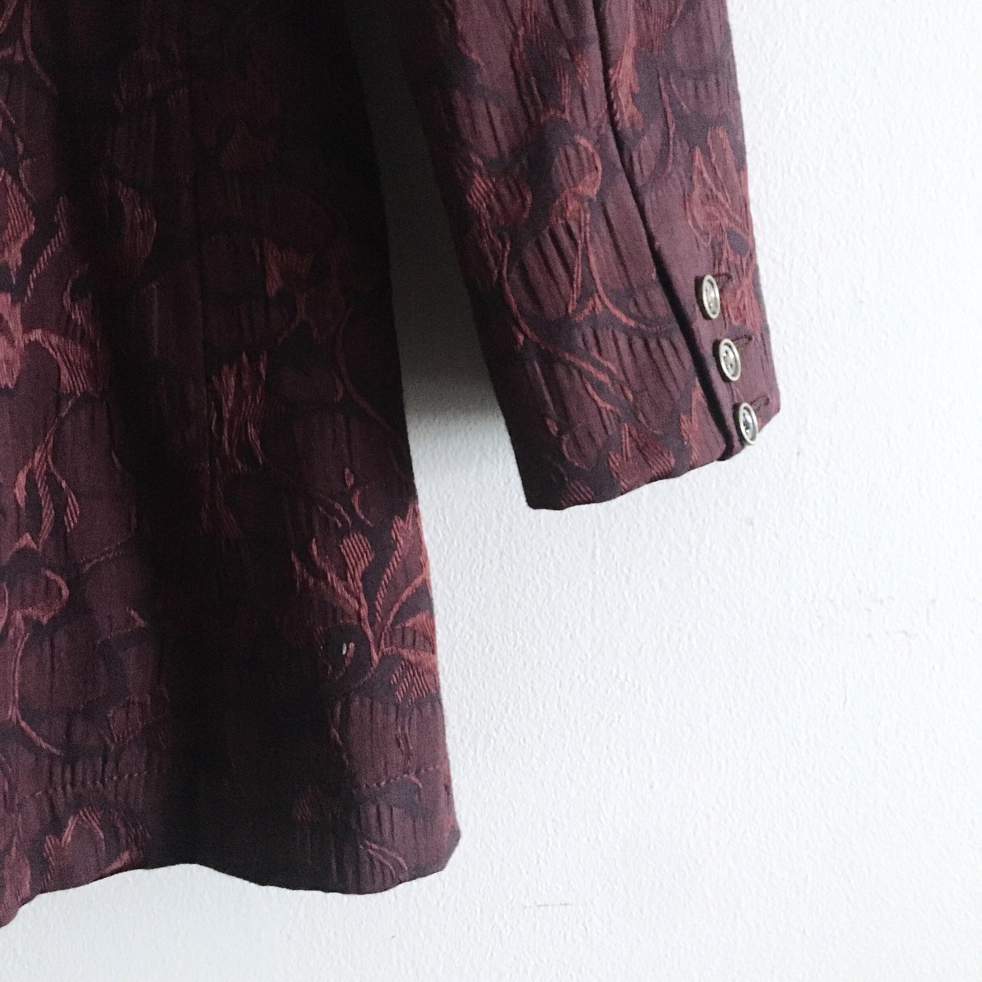 Item Description: This Free People jacket has all the victorian vibes - brocade exterior, lace inset back with corset tie-up and metal button cuffs. Can we say Captain Jack Sparrow’s lady? Shell: 49% cotton 49% polyester 2% spandex