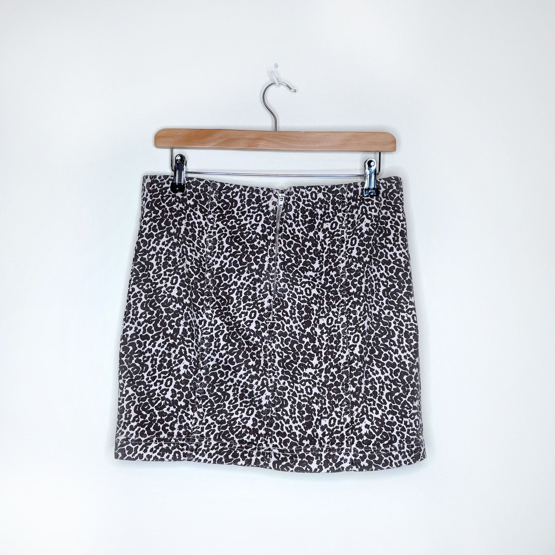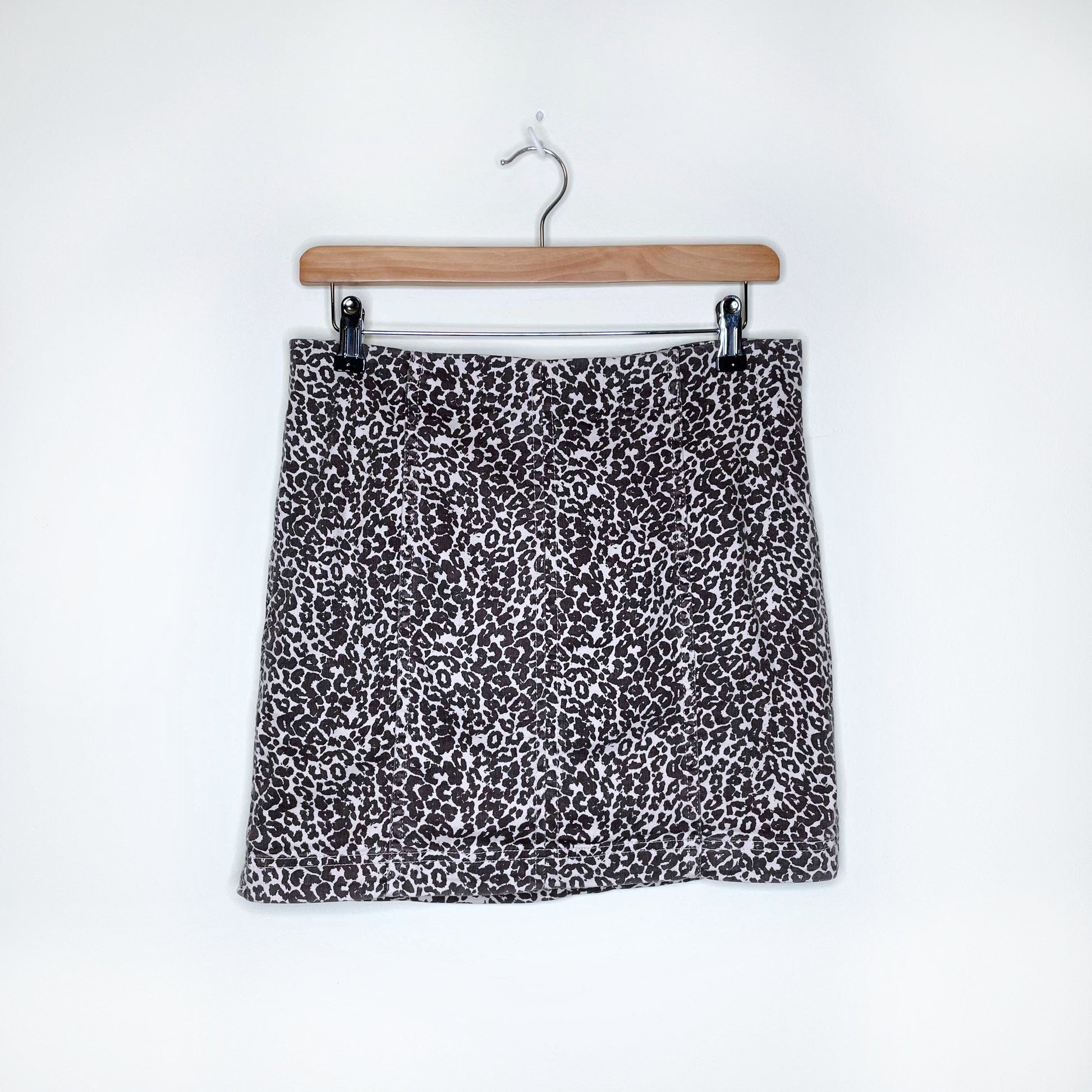 Item Description: Get wild with this animal printed denim mini skirt from Free People. Pair with black moto boots and an old band tee. 91% cotton 6% polyester 3% spandex