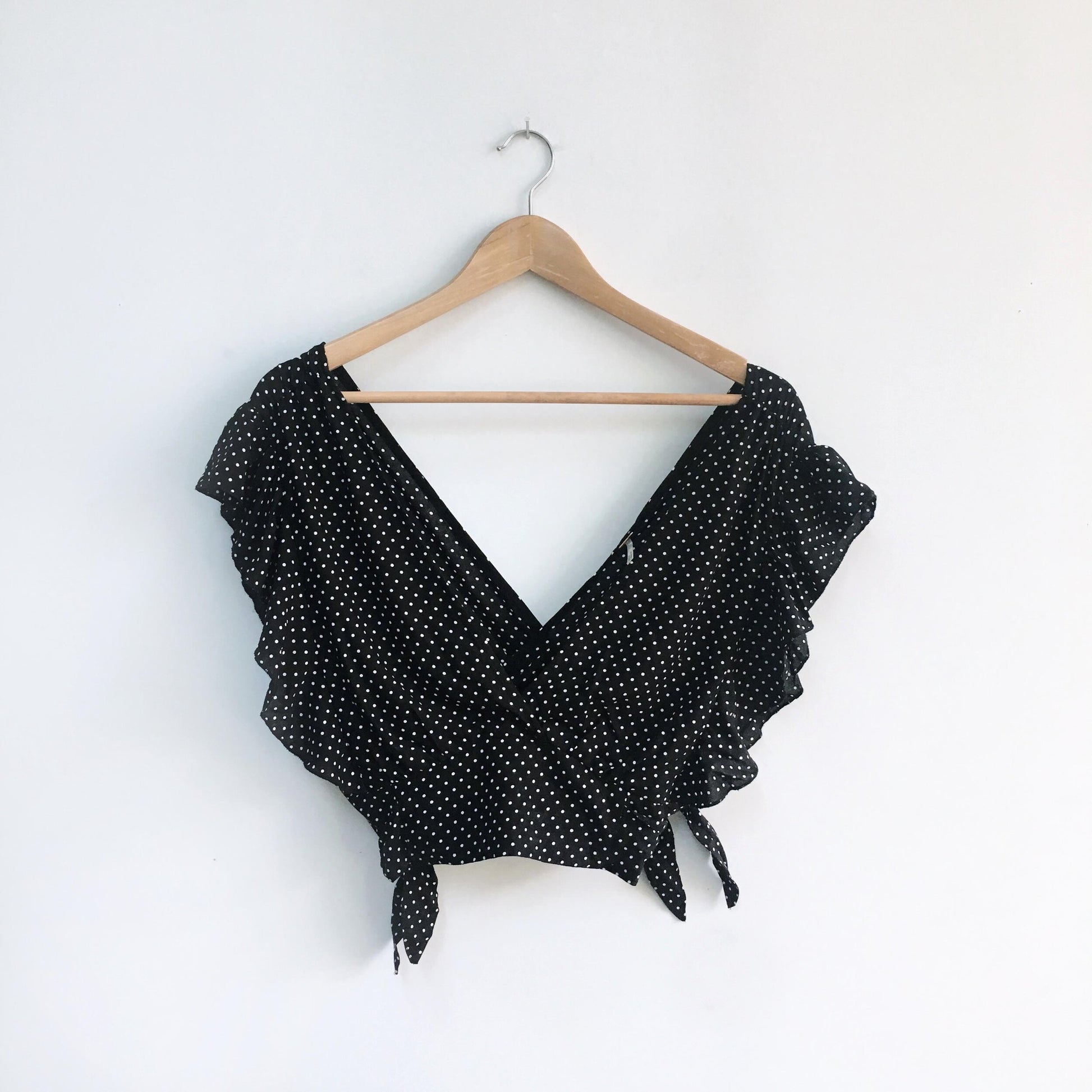 Item Description: A classic swiss dot print covers this 2-piece Free People set. The crop top has bows at the hem and a deep surplice neckline. The ruffled, full-length skirt has inset smocked elastic at the waistband. 100% viscose.