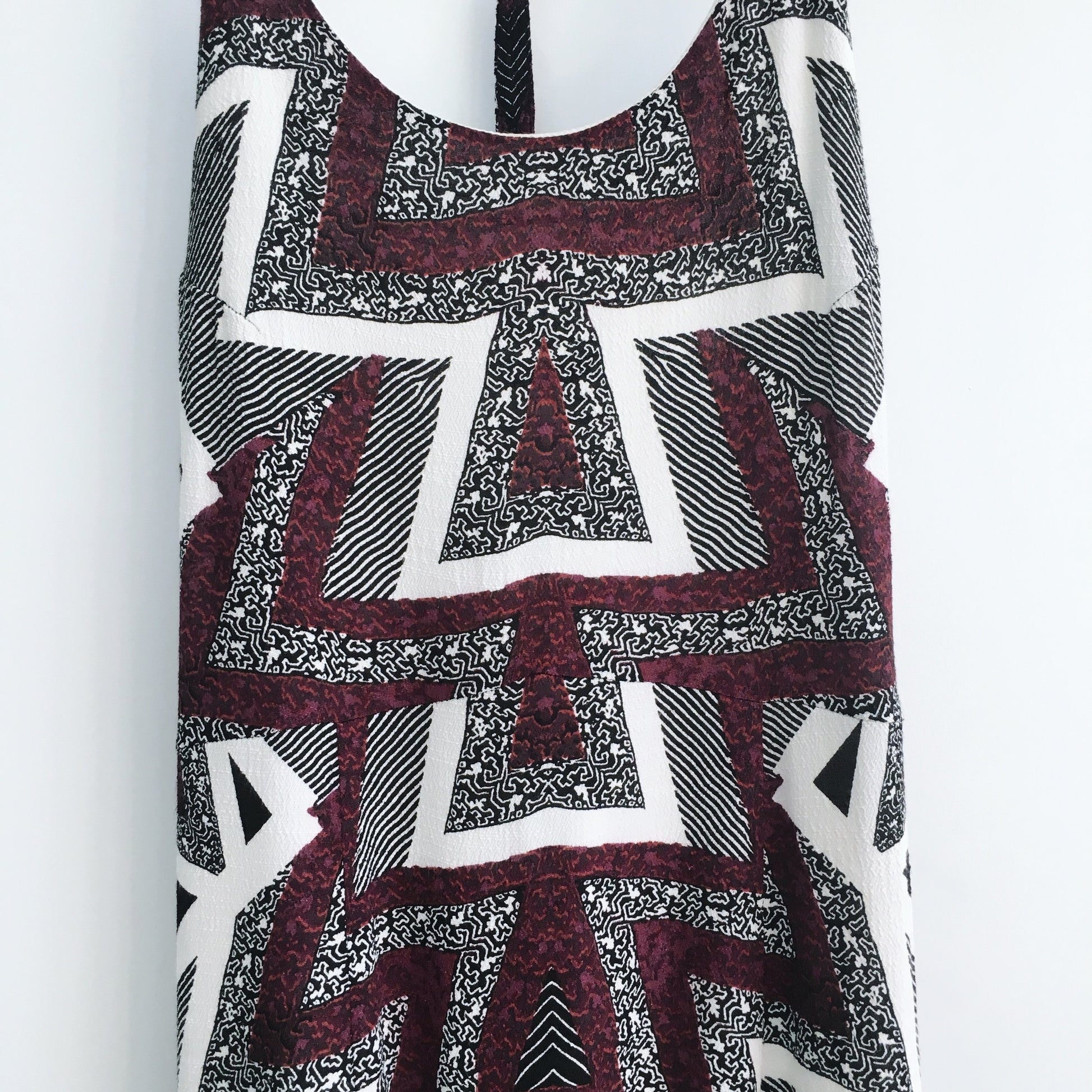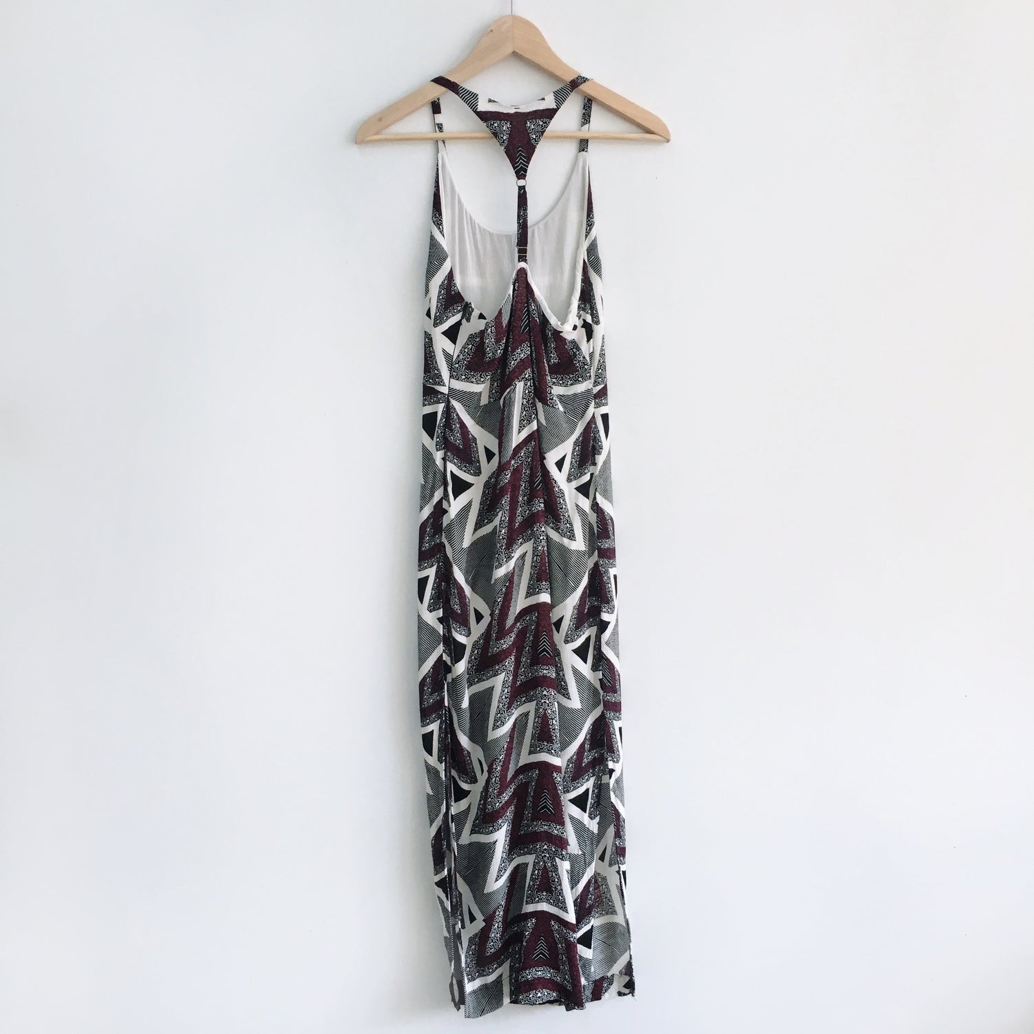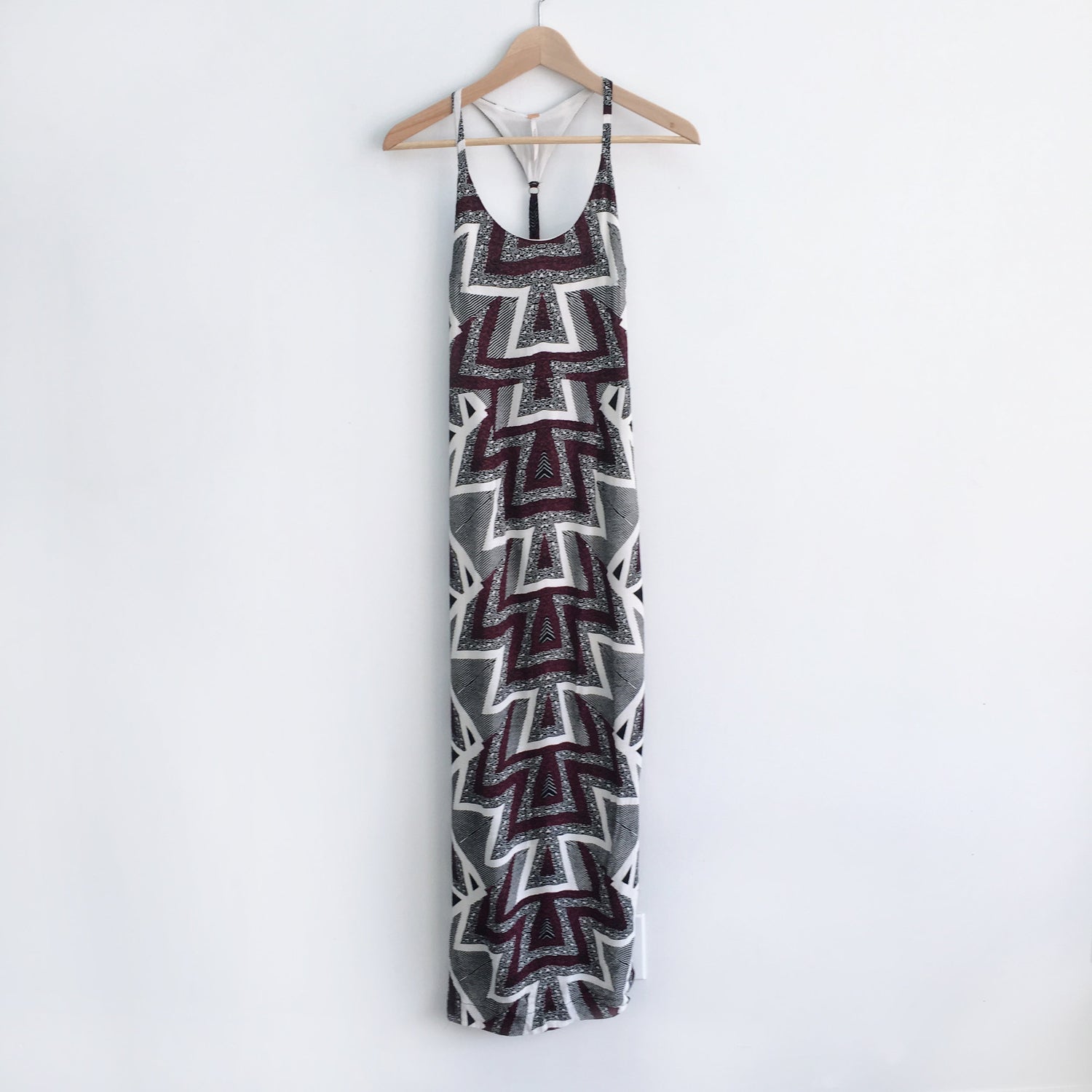 Item Description: This boho print maxi features an adjustable racerback strap, side slits and lining. Side zipper. As seen on Shay Mitchell (You).