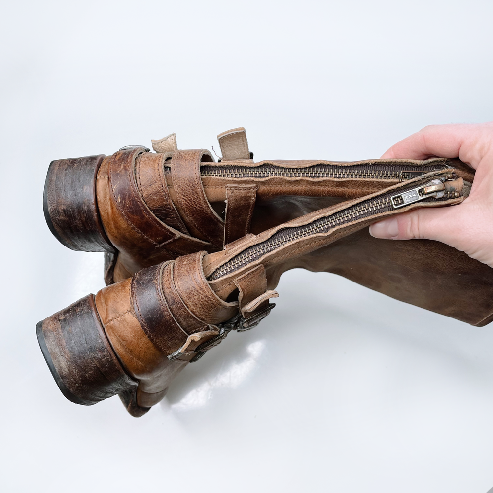 Item Description: These leather drove boots from Freebird were made to look worn in and have weathered perfectly - harness straps around the ankle give off major farmer - racher vibes, and a tall shaft has a western cowboy boot feel. 100% leather upper and sole.