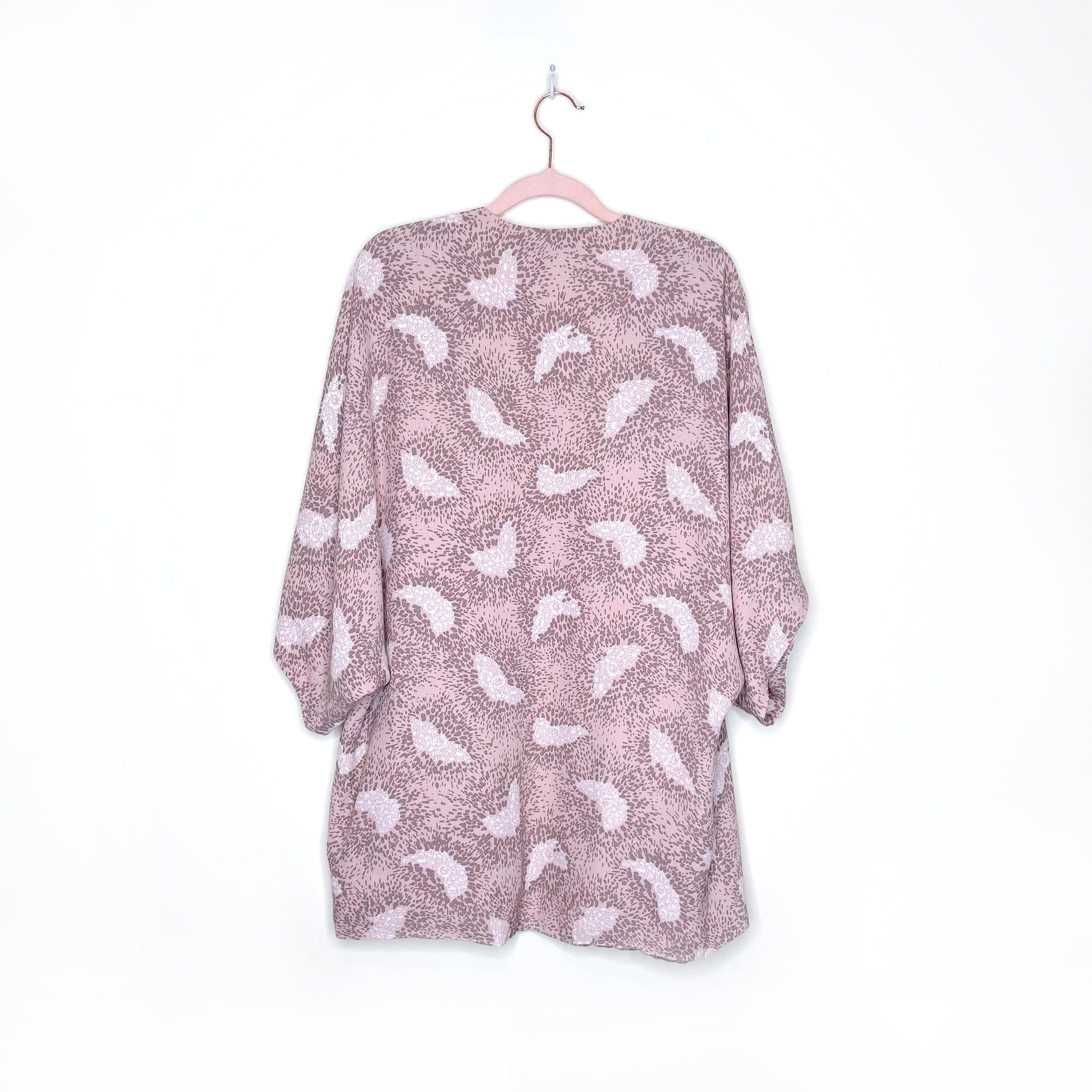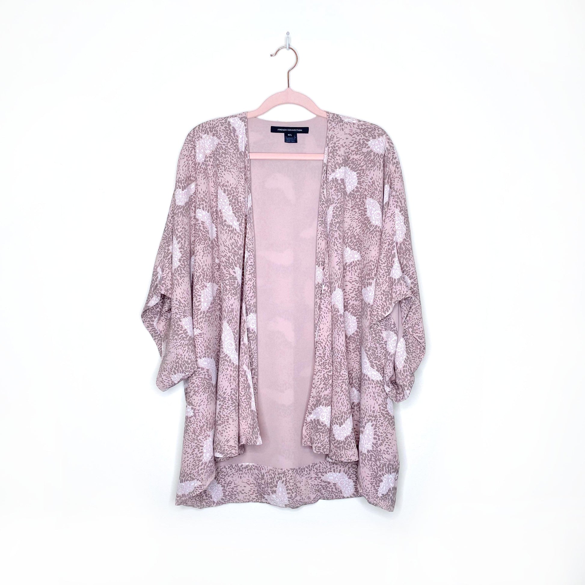 Item Description: This medium-weight pink patterened kimono from French Connection is super romantic - the open and flowy nature provides the perfect cover-up for your outfit or bathing suit. Shell: 100% viscose Lining: 100% polyester