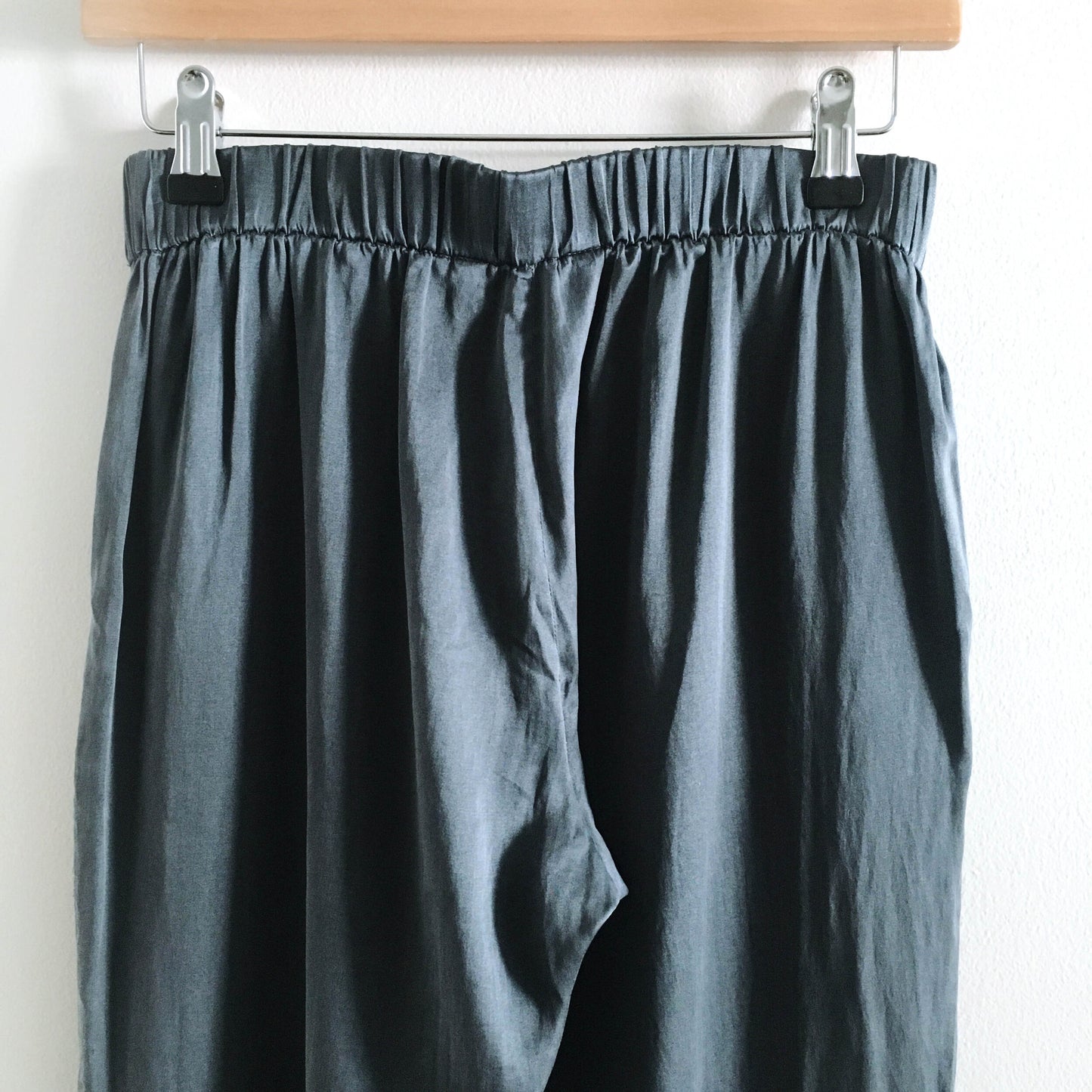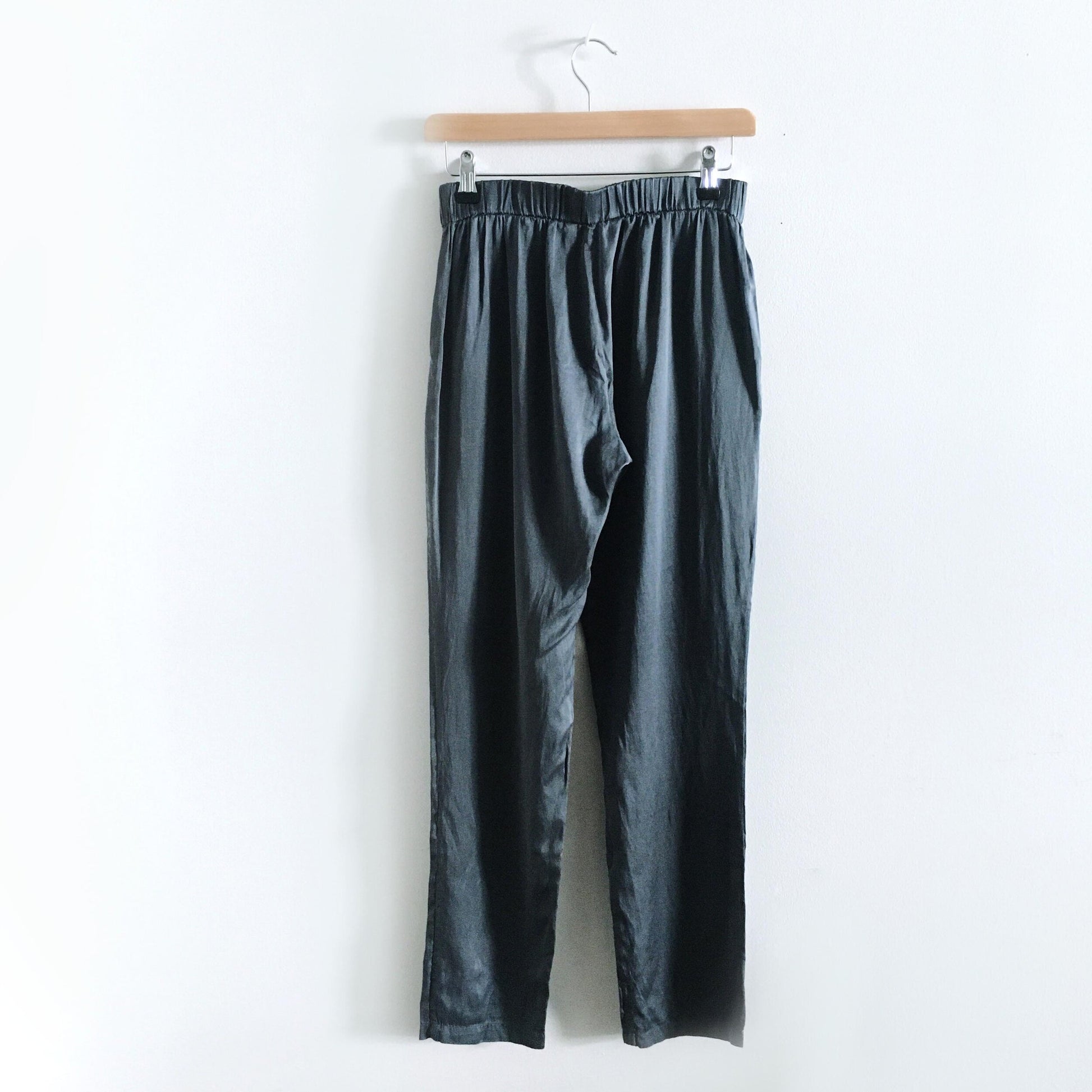 Item Description: These silky dusty blue joggers from French Connection feature an elastic waist and tie front (faux drawstring), and side pockets. 100% silk