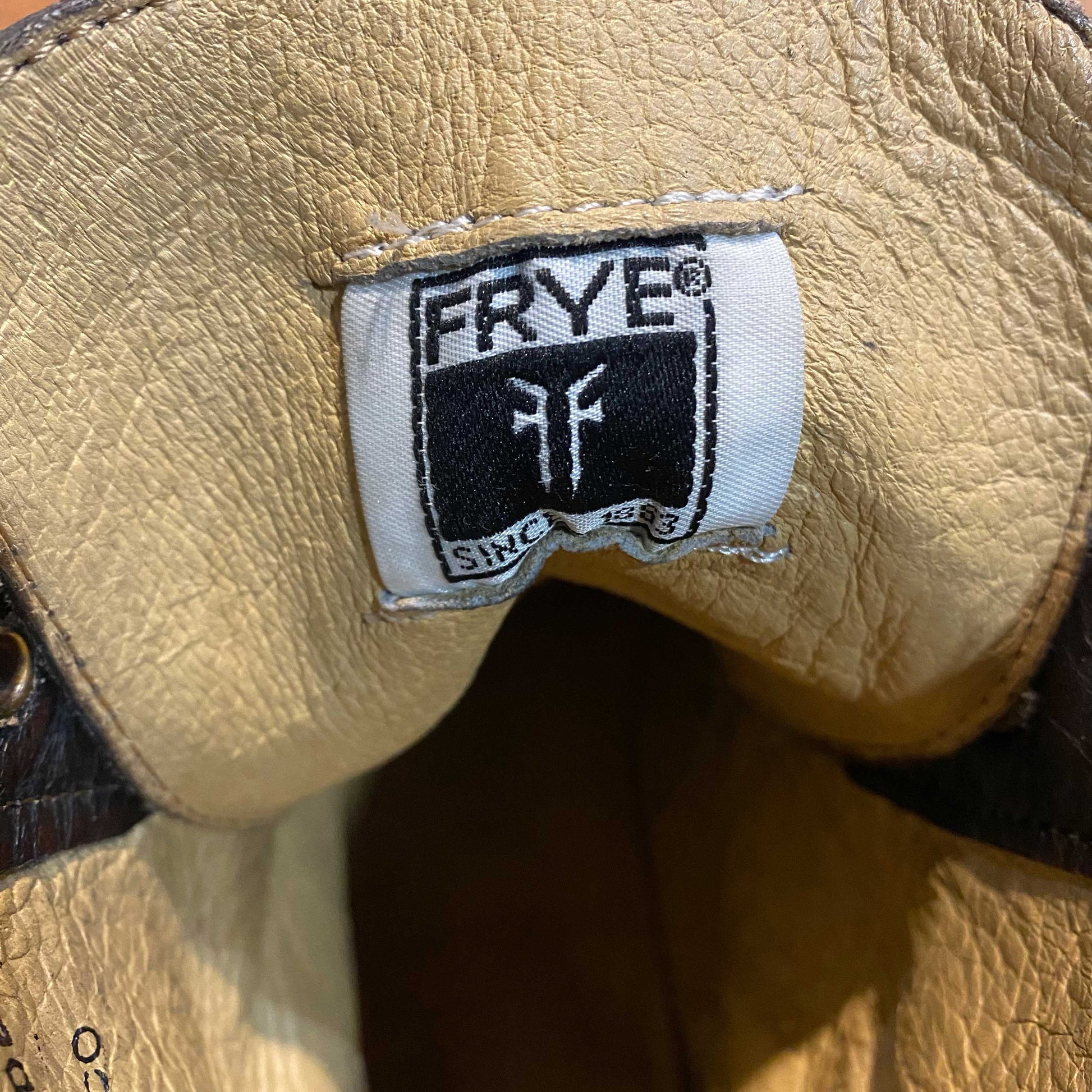 Item description: This slim leather combat boot from FRYE is set in a cherry-red brown hue with a made-to-look-weathered, worn in look.