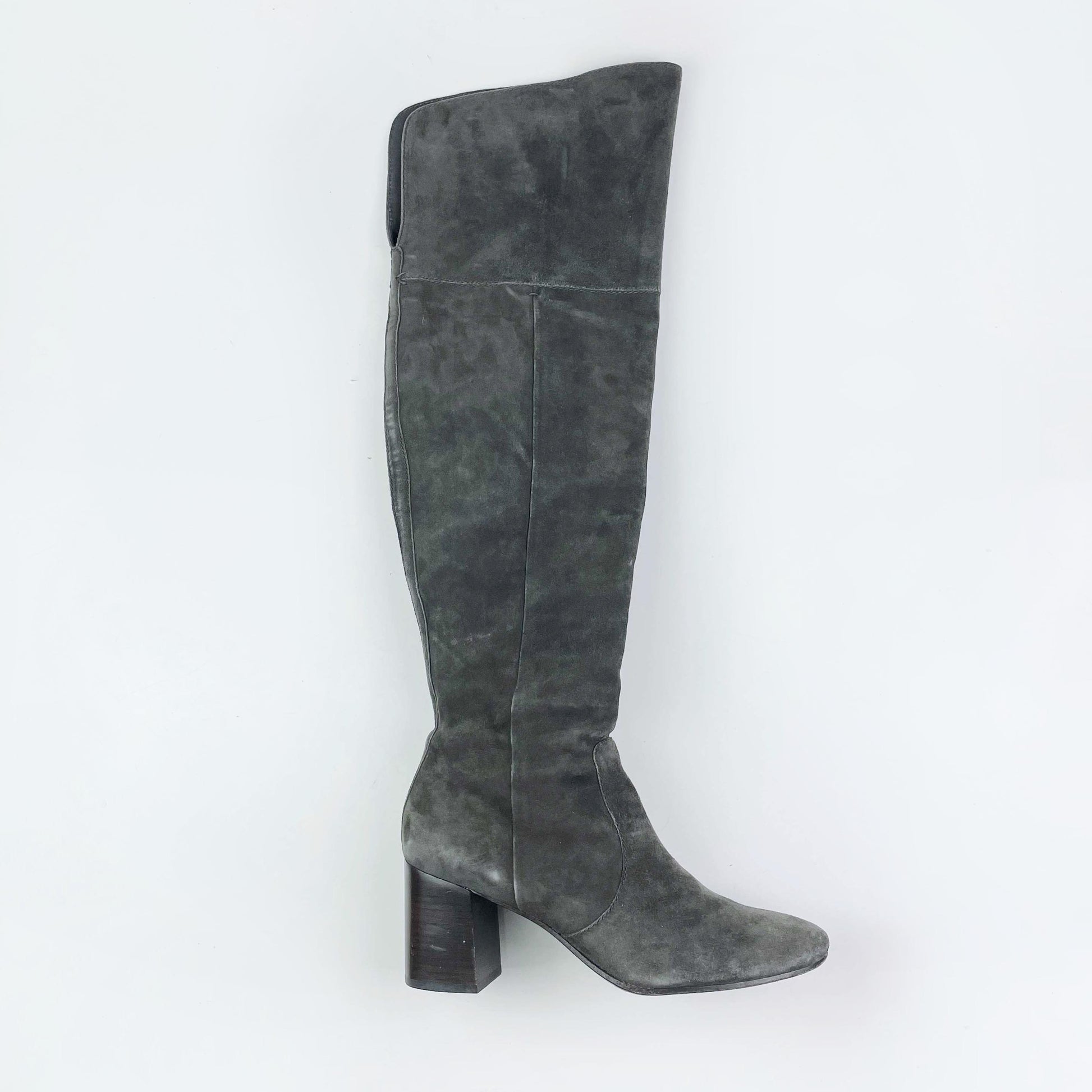 frye the clara grey suede over the knee heeled boots - size 9.5