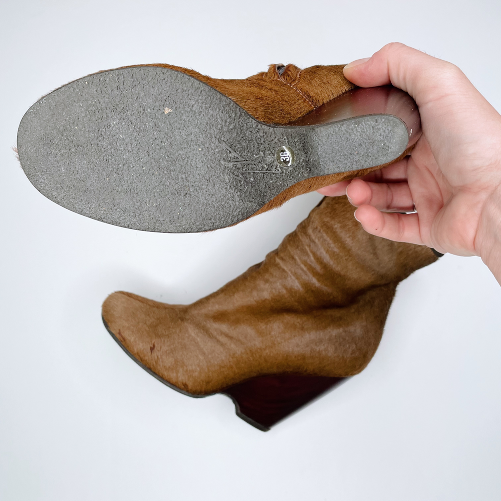 Item Description: From the 2009 collection, these calf hair wedge boots from Giuseppe Zanotti are made in Italy with soft leather thats beautifully worn in, and finished with a trendy wedge heel.