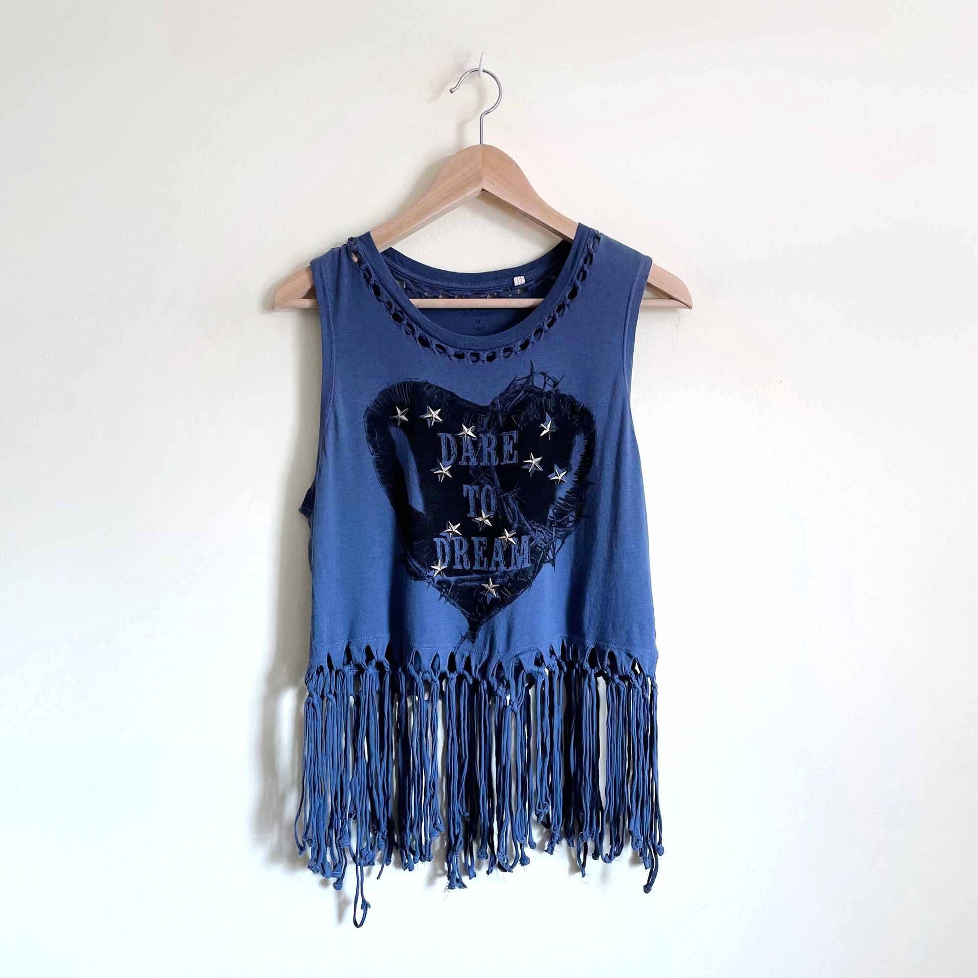 Guess festival fringe Dare to Dream studded crop top - size Medium