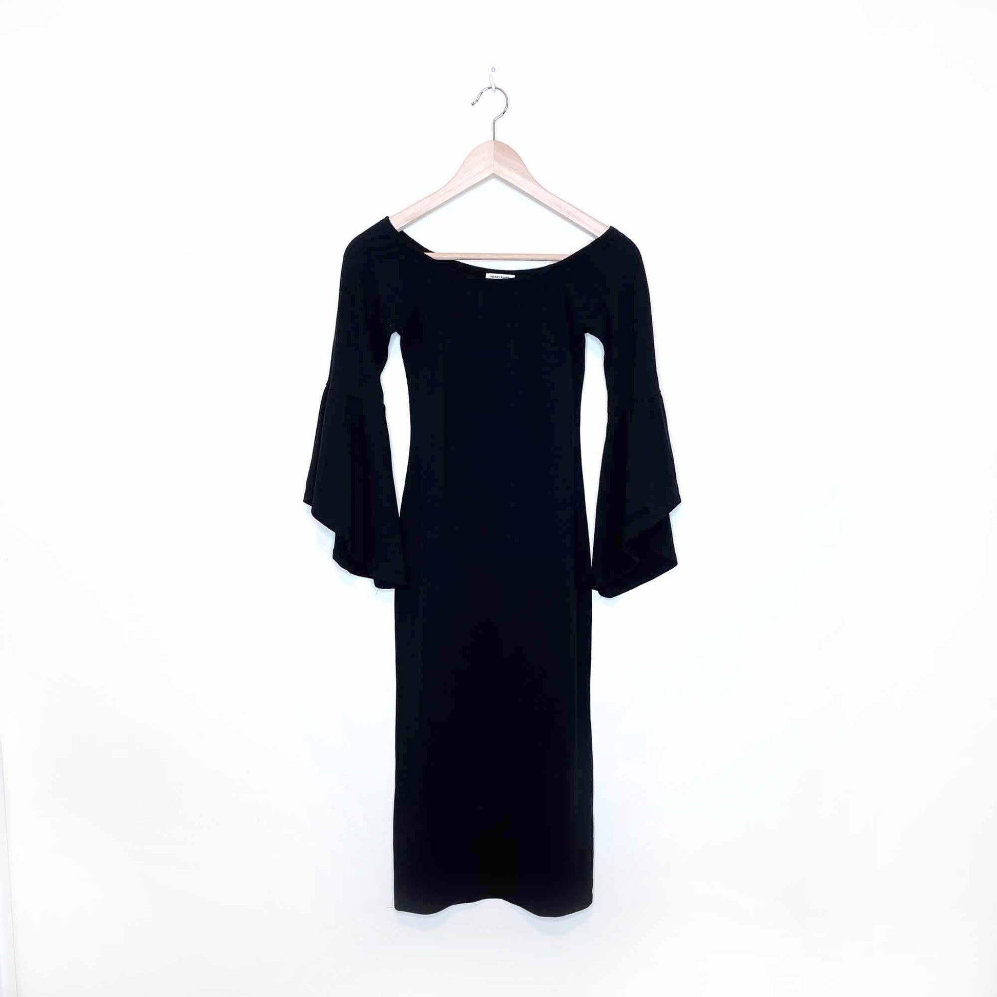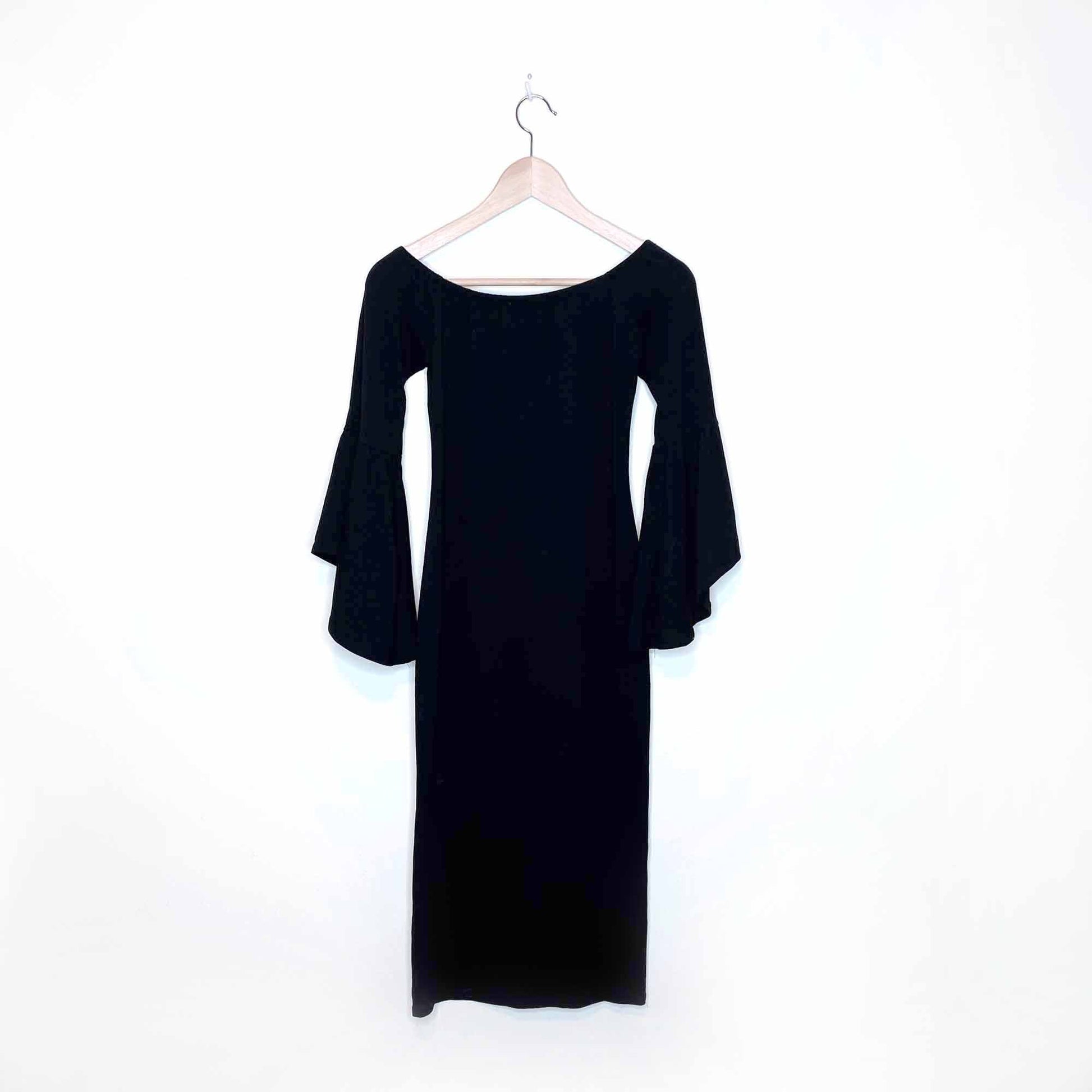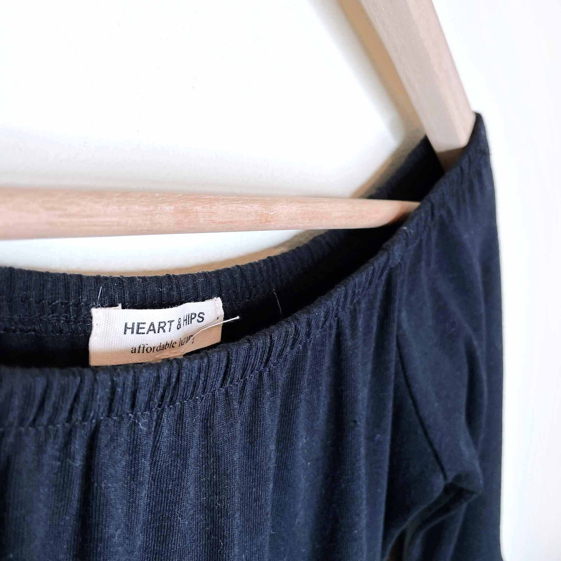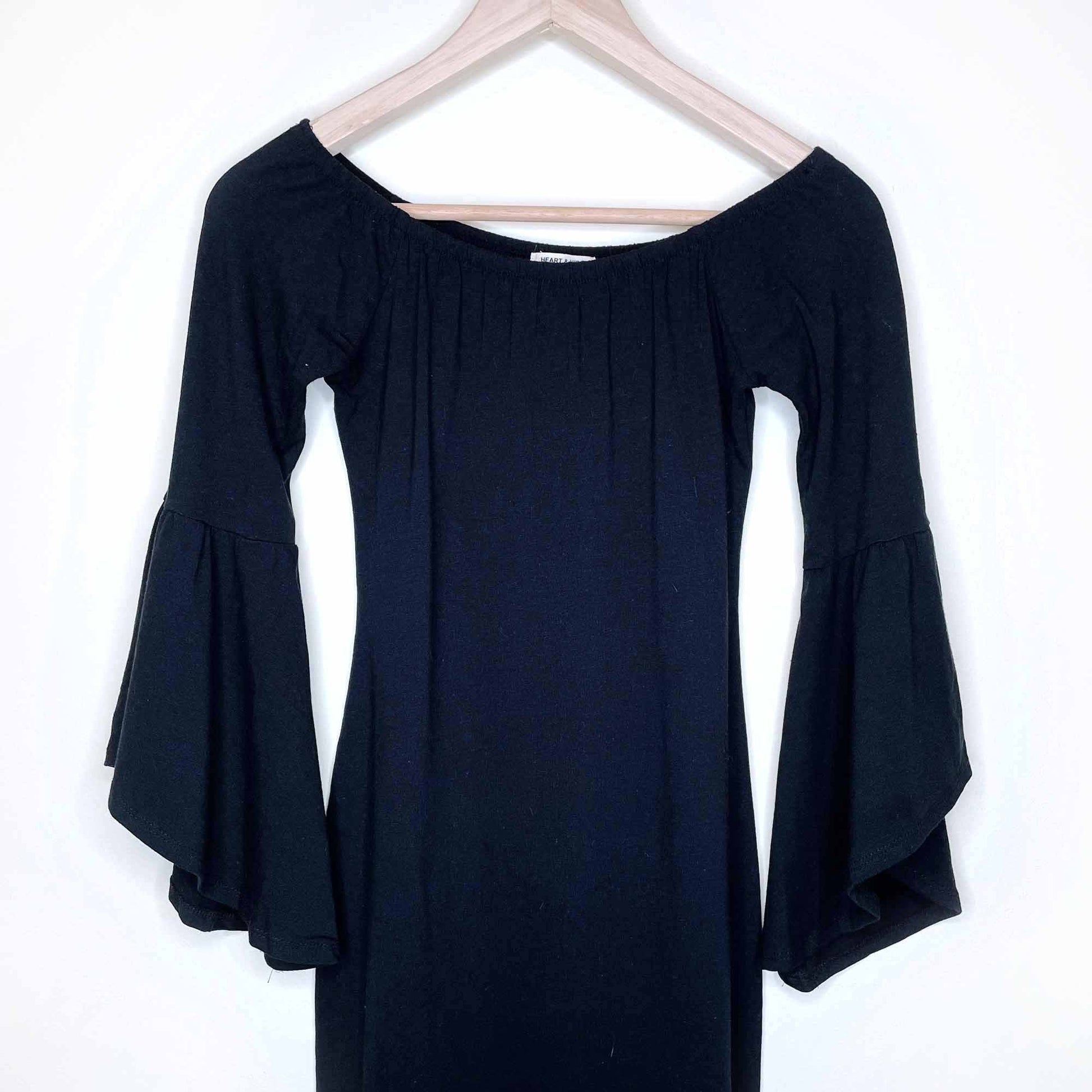 hearts & hips black off shoulder jersey dress with bell sleeves - size medium