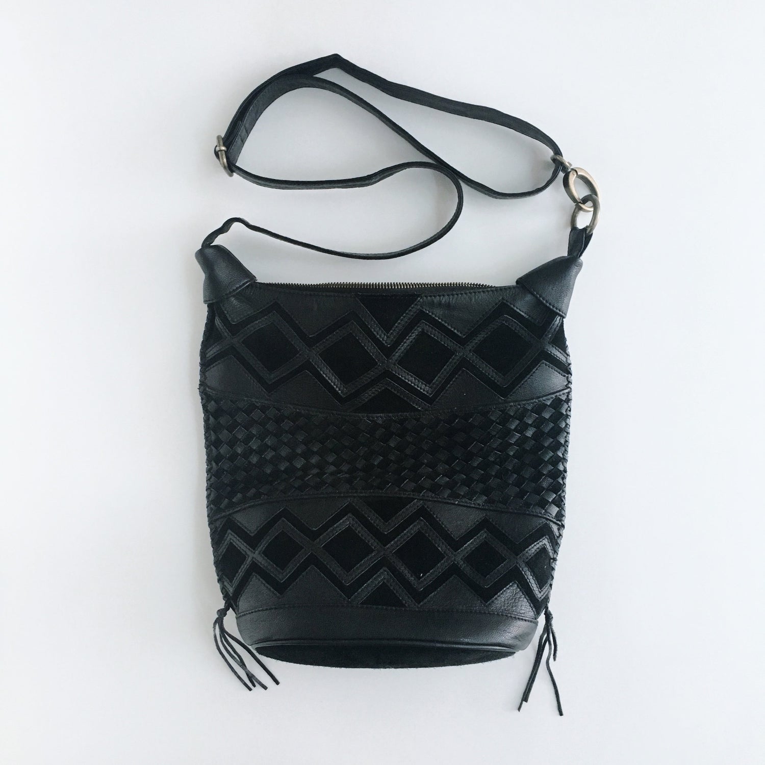 Item Description: Scoop up this beauty little cross body from Hibou - features a boho tribal weave with leather and suede and minimal side tassels. In excellent condition!