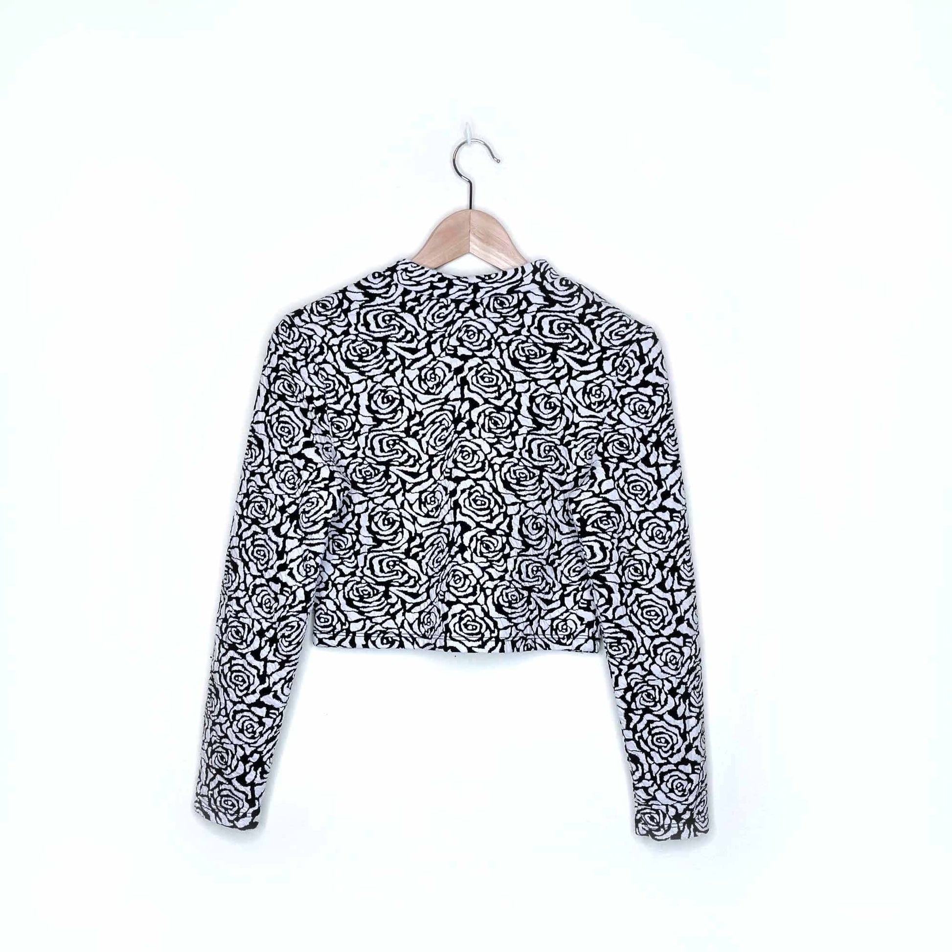 h&m dividend jacquard rose cropped long sleeve top - size medium