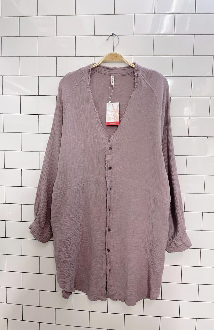 igenjun gauze cotton lilac shirt dress