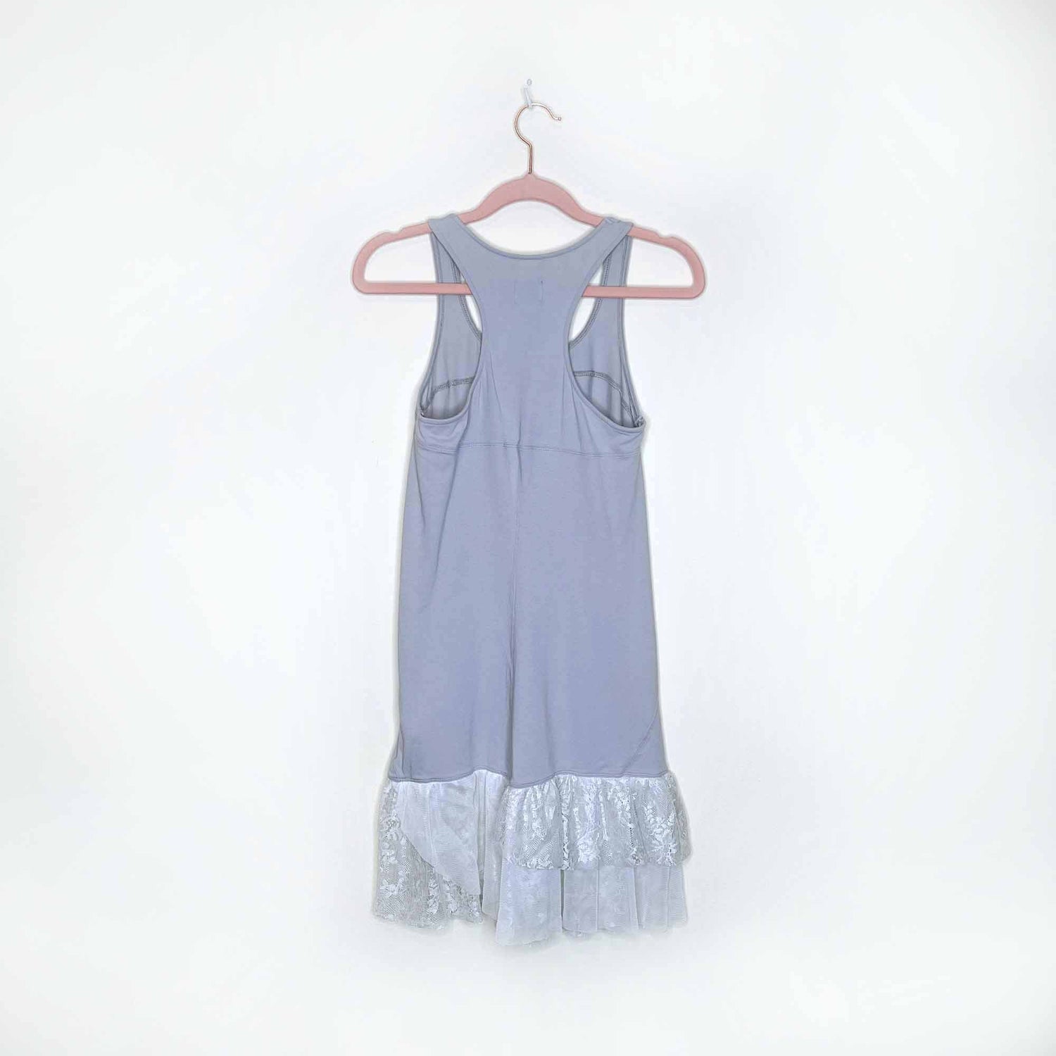 Measurements: 14" across chest 24" shoulder to hem before lace 32" shoulder to lace hem