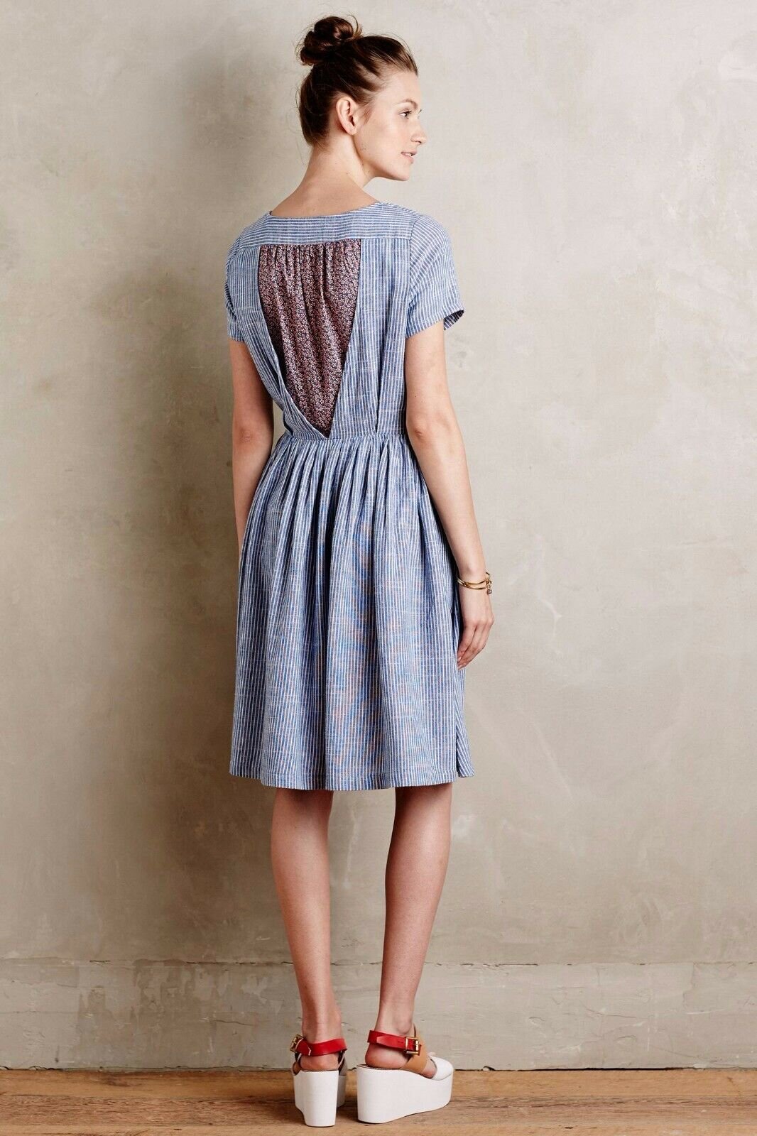 Item Description: An elegant garden dress from Anthropologie’s Isabella Sinclair, this linen blend dress features a ‘Hidden Blooms’ cut-out on the back, pin-tucking on the front and a snap button hidden closure. 55% linen 45% cotton