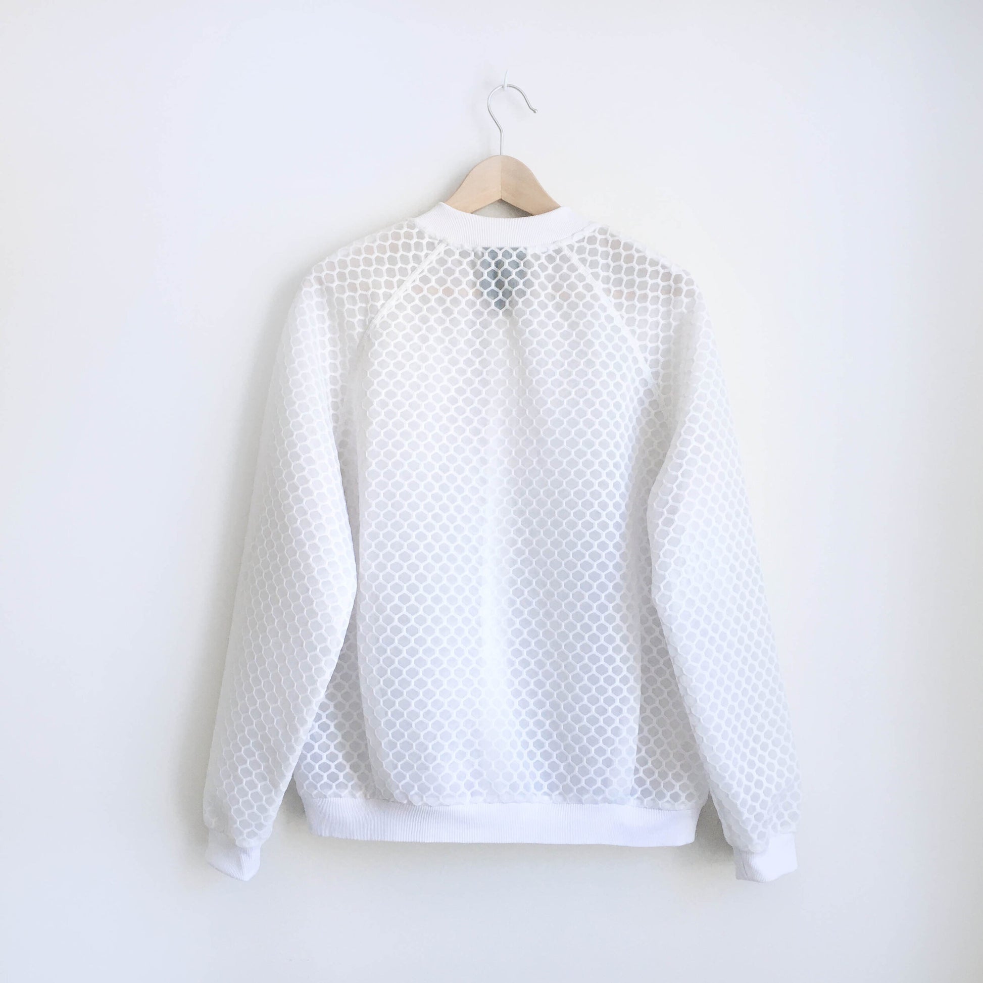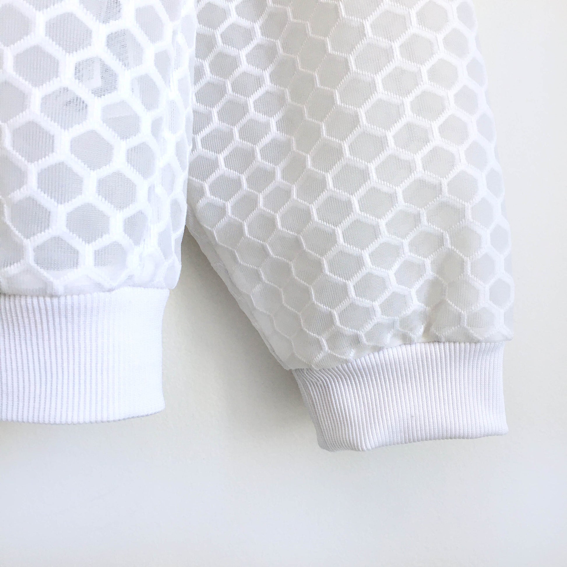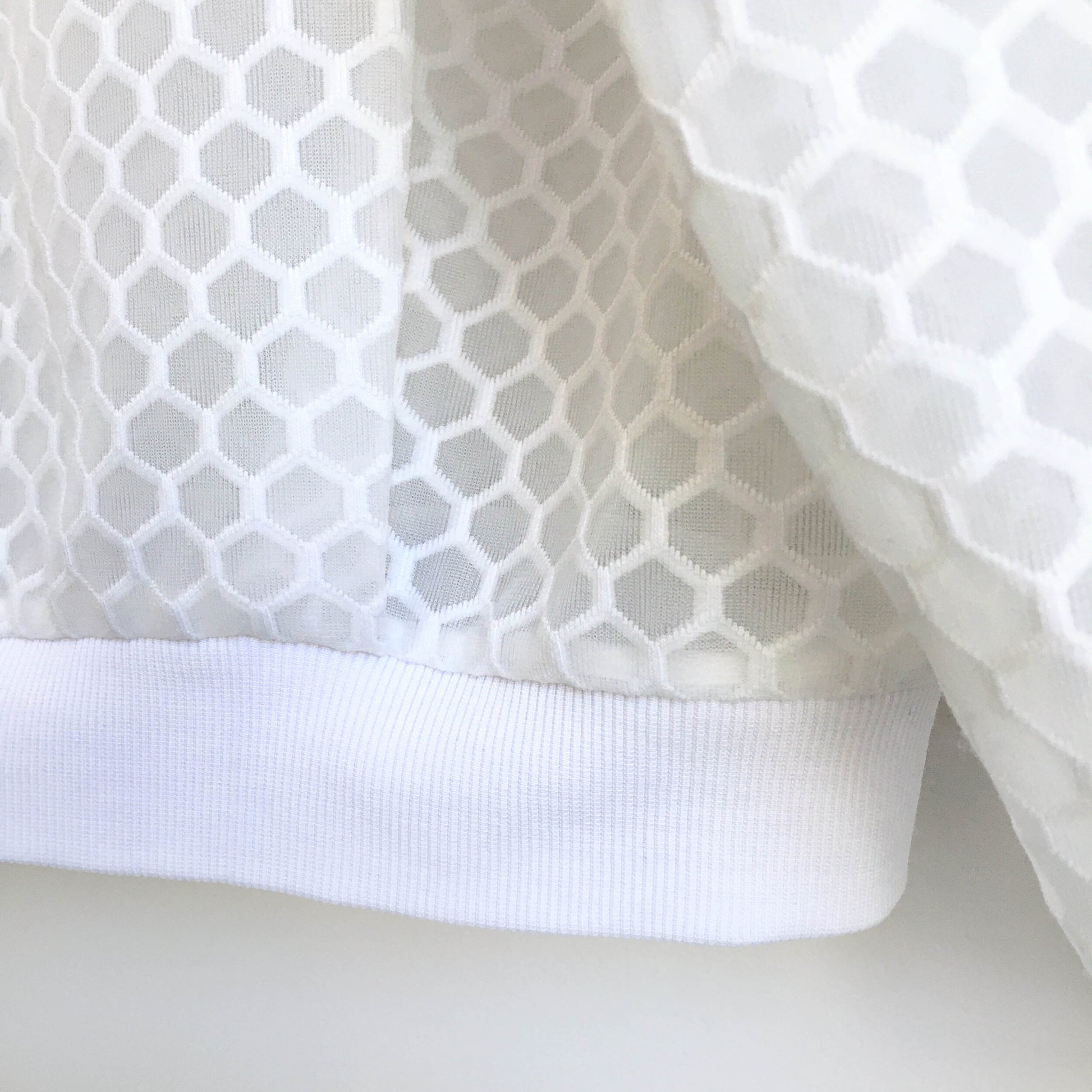 Item Description: The ultra rare IVY PARK mesh bomber jacket Beyoncé wore on the cover of Elle when she launched this line. Mesh hexagon pattern construction, billowy bomber shape, two pintucks at the back and front zip with a small v-neck dip. 100% polyester