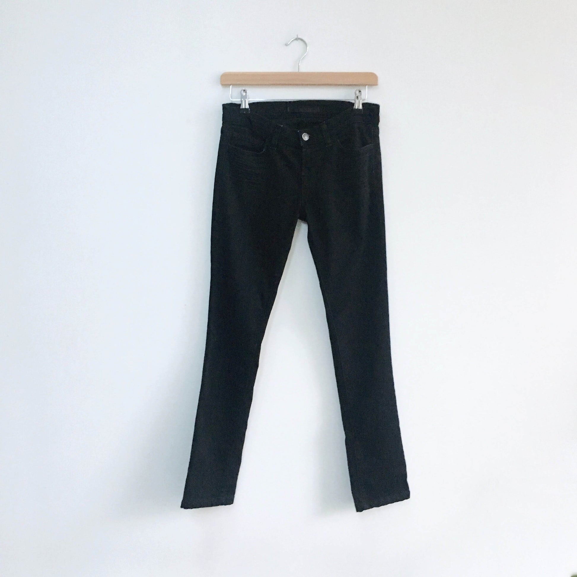 Item Description: Classic skinnies, classic colour. These skinny jeans feature 5-pocket styling and a single-button closure. Wrinkling at front. 12" leg opening.