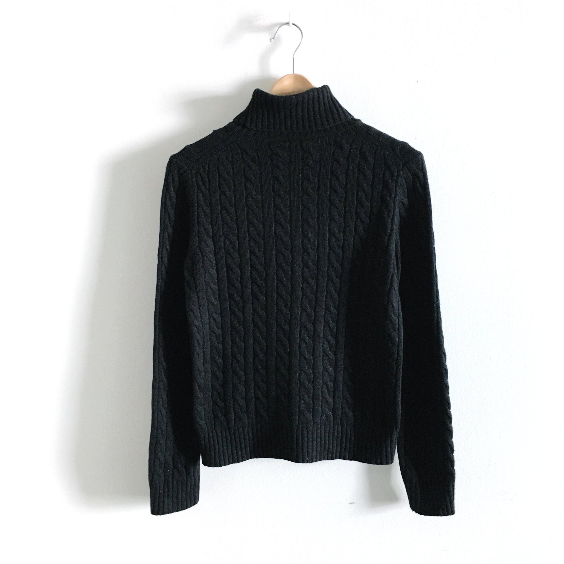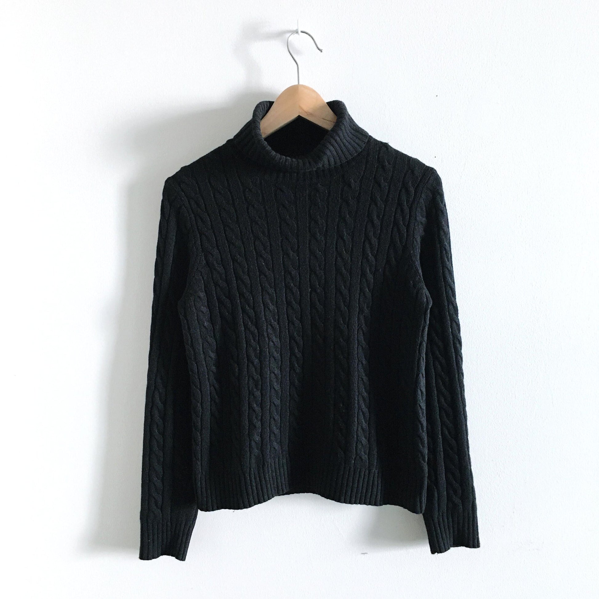 Item Description: A magical mixture of merino wool, angora and cashmere make this sweater a dream to wear. This cozy turtleneck features classic cable knit details, in a shortened silhouette that rests right at your hips. Good to tuck in or wear out of high waisted skirts and trousers. 40% wool 30% viscose 20% angora rabbit hair 10% cashmere