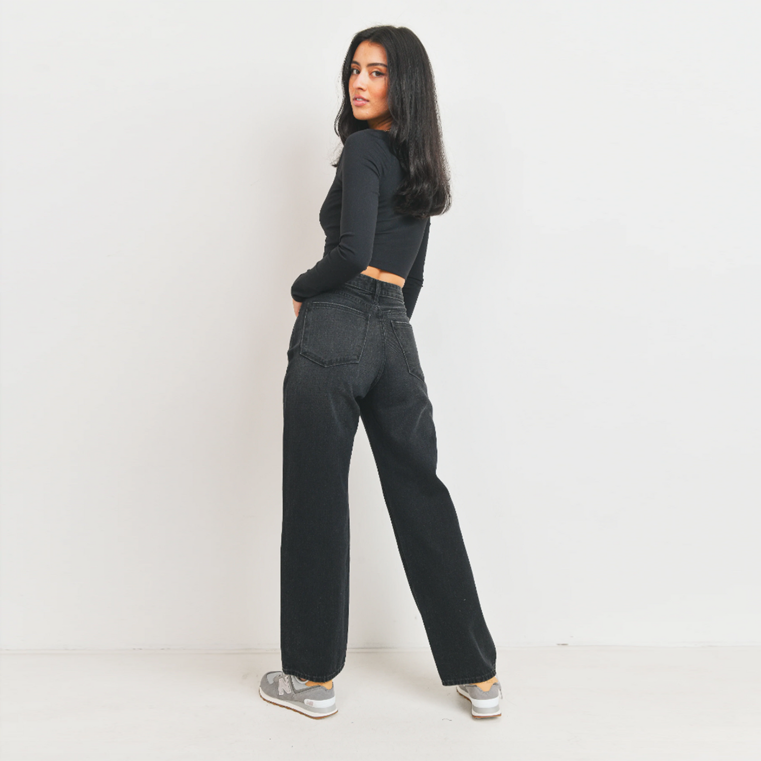 Tags: wide leg, retro, ankle, slouchy, baggy, high rise, black, washed black, bikercore, moto, faded black, all black, 90's minimalism