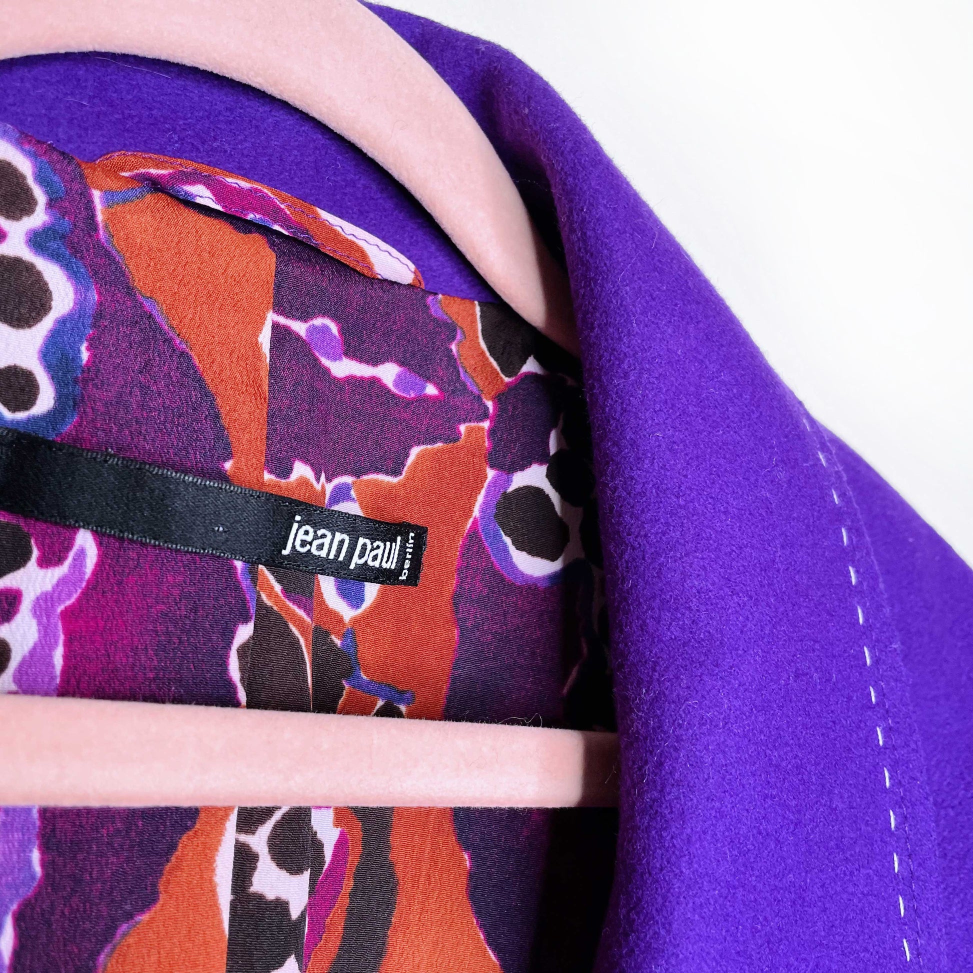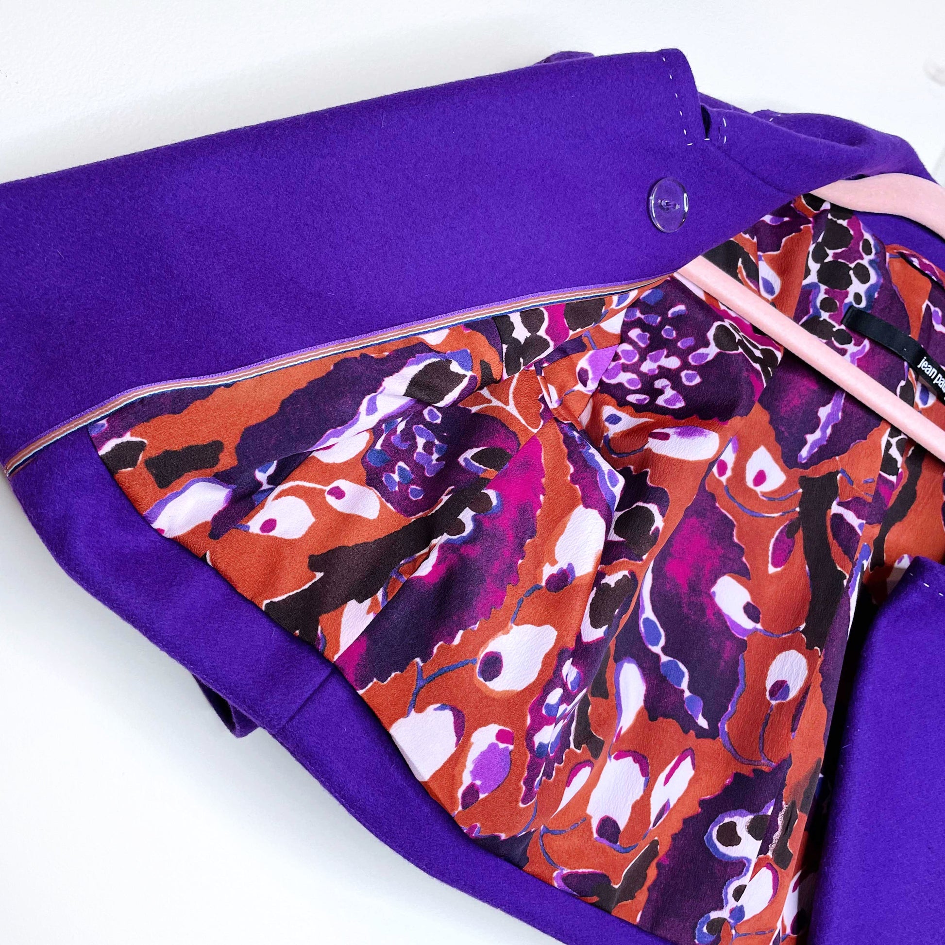 Item Description: This chic y2k bolero jacket from Jean Paul Gaultier features structured puff sleeves and a strong lapel game with contrast stitching and a colourful liner. 80% wool 20% polyamide